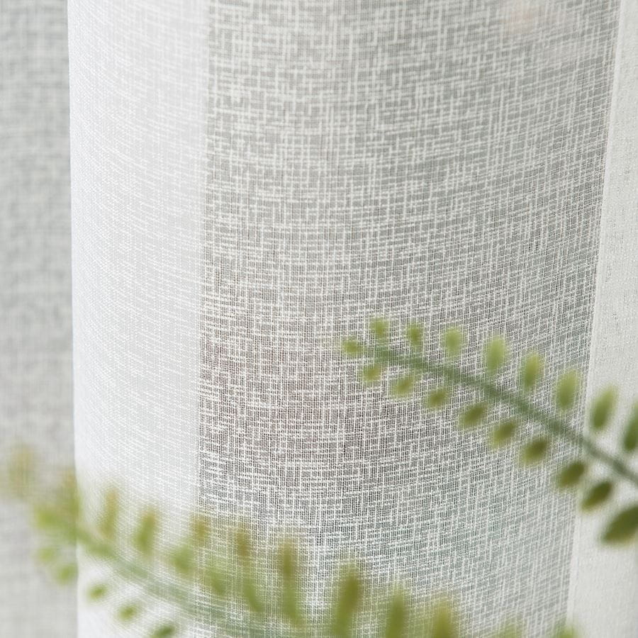 z dzianiny fantazyjnej, tzw. 'sable'. Znakomicie się układa, dzięki czemu doskonale nadaje się do szycia firan lub lambrekinów. Stosowana jest również samodzielnie jako prosta i bardzo elegancka firana. Firana dostępna w metrażu w kolorze ecru, objęta tolerancją wysokości w granicach +/- 5 cm.
