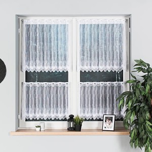 Najpiękniejsze firany znajdziesz w naszym sklepie internetowym. Ta stworzona z żakardu jest doskonałym sposobem na uchronienie swojej prywatności. Najbardziej korzystnie będzie wyglądała w kuchennym oknie. Została zaprojektowana w taki sposób, aby nie przeszkadzała na przykład podczas gotowania. Warto zamontować dwie na oknie, by stanowiły dobrą ochronę przed wglądem osób trzecich do naszego domu. Zachęca również do postawienia na parapecie różnych ozdób, takich jak figurki czy kwiaty. Jest zrobiona w stu procentach z poliestru. Posiada gładki, matowy materiał, a dzięki temu, że stanowi dokładny splot nici, nie widać na niej od razu osiadającego kurzu. Jest białego koloru, posiada piękne hafty, które ją urozmaicają. Przypominają drobne sopelki sunące po materiale, który jest bardzo delikatny. Z tego względu pasuje do każdego wystroju i nie będzie sprzeczna z kolorowymi dodatkami, które aktualnie dominują w nowoczesnej odsłonie Twoich prywatnych, czterech ścian. Uszyjemy ją dla Ciebie na miarę, więc będzie dokładnie taka, jaką sobie wymarzysz.