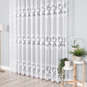 Biała firanka, wykończona dekoracyjnym wzorem pasowym, wykonana jest z wysokiej jakości żakardu, który zapewnia trwałość i elegancję na długie lata. Jest niezwykle łatwa w pielęgnacji - nie wymaga prasowania, a dzięki wysokiej jakości materiałowi, z którego została wykonana, jest trwała i odporna na uszkodzenia. Oferując wiele możliwości aranżacyjnych i dekoracyjnych jest doskonałym dodatkiem do każdego wnętrza.