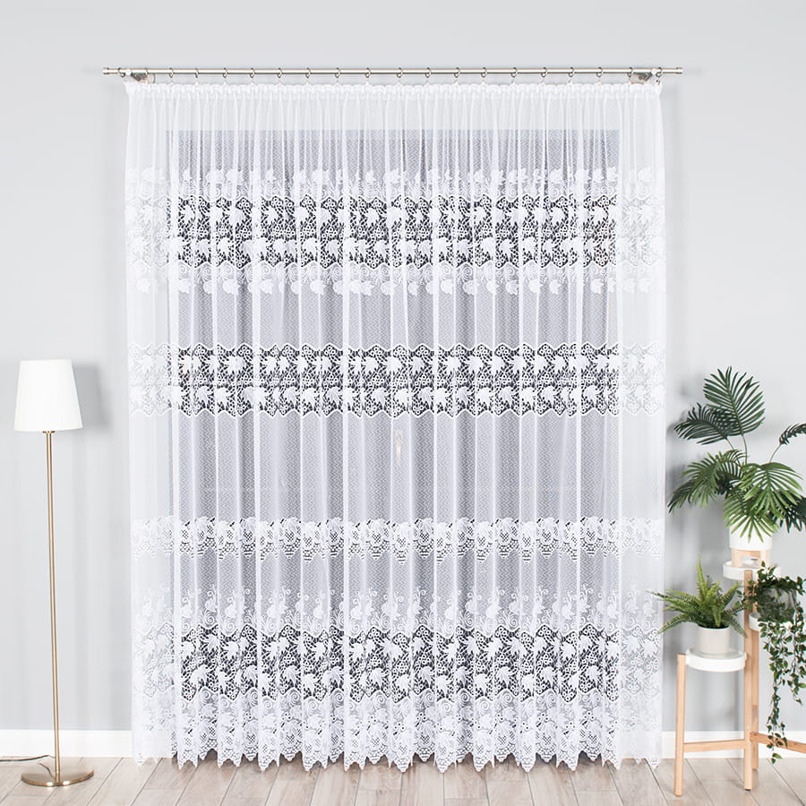 Firanka biała żakardowa z pasowym wzorem wysokość 250 cm 004164