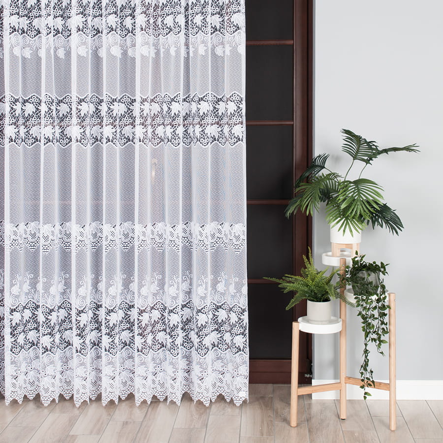Firana dostępna w metrażu, objęta tolerancją wysokości w granicach +/- 3 cm.