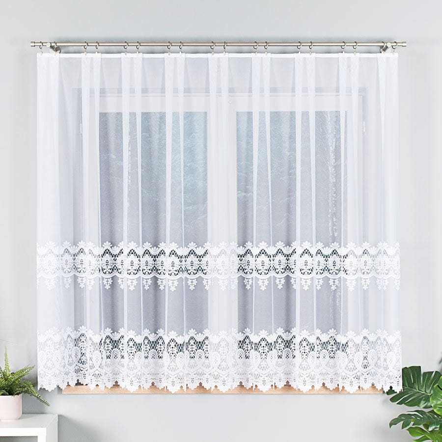 Firanka biała żakardowa ze wzorem pasowym wysokość 160 cm 018982