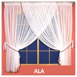 Firana wykonana z kremowego lub białego woalu, wykończona atłasowa lamówką nadająca firanie uroku. Góra firany uszyta jest na szerokiej taśmie