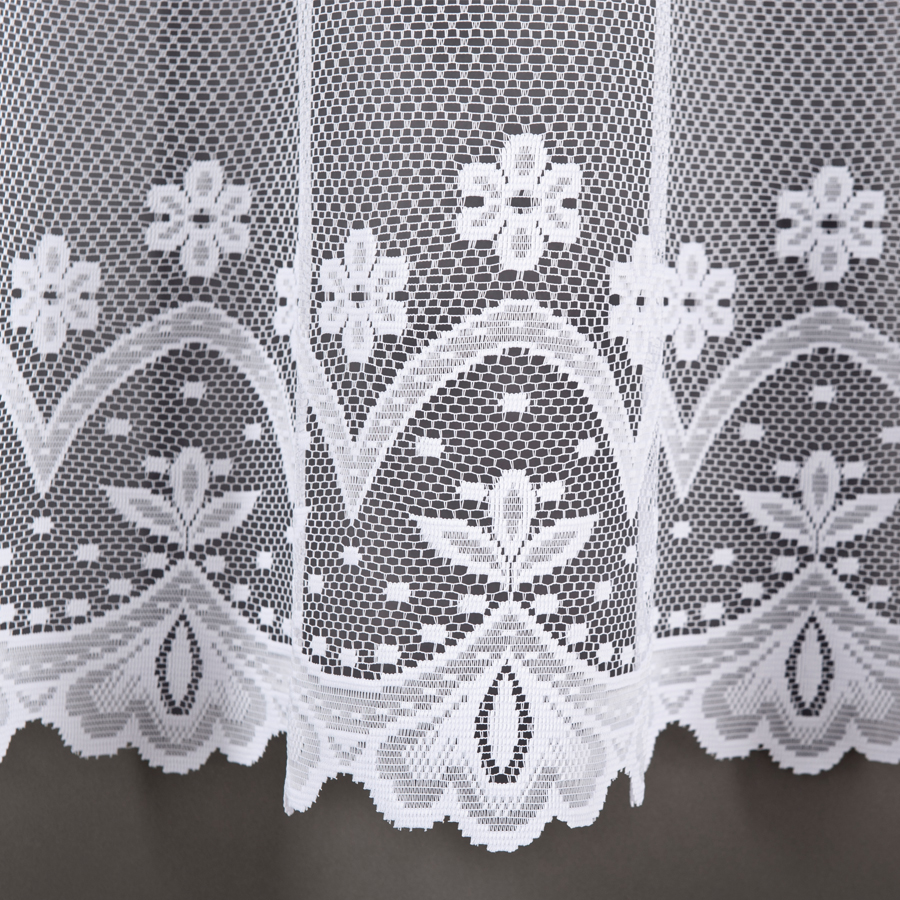 Firanka dostępna w metrażu, objęta tolerancją wysokości w granicach +/- 3 cm.