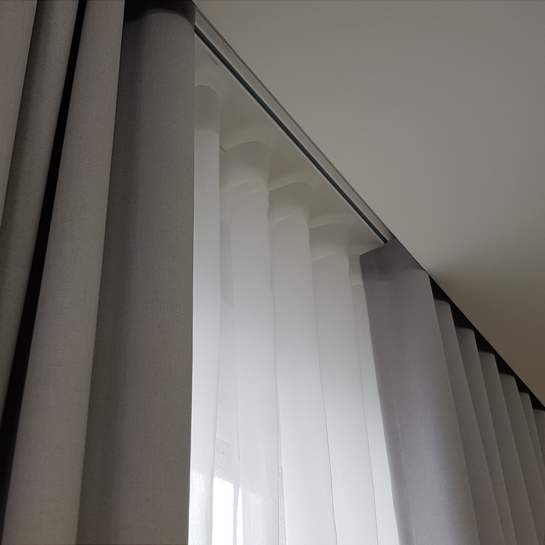 Uszyta z batystu z atestem, marszczenie 1:2. System fala.