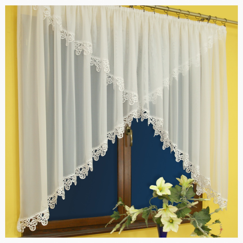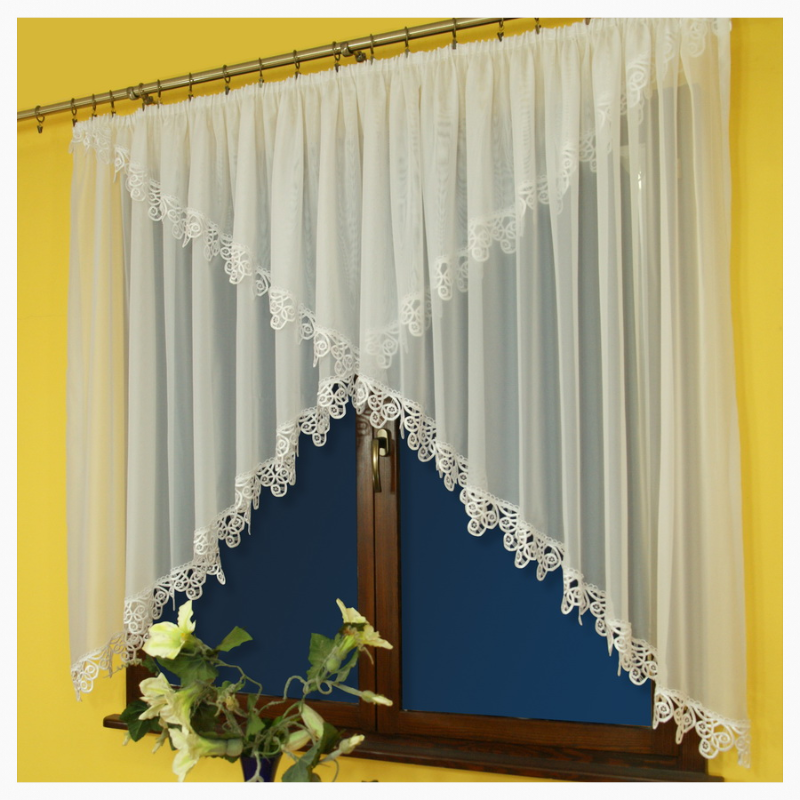 Wykończona dekoracyjną gipiurą, uszyta na uniwersalnej taśmie marszczącej. Delikatny "kopertowy" wzór doskonale wkomponuje się w