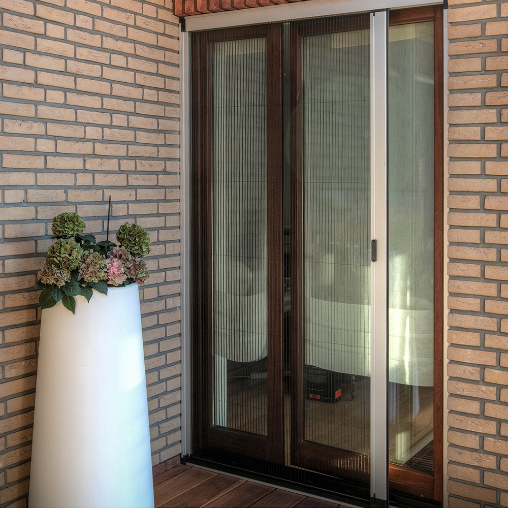 Moskitiera plisowana zapewnia świetną ochronę przed: insektami, owadami, opadami z krzewów, drzew lub kwiatów. Bardzo dobrze sprawdza się przy wyjściach na taras czy balkon. Stabilne i lekkie działanie moskitiery zapewnia sprawdzony system. Pakiet moskitiery ukryty jest w bocznej części prowadnicy. Dzięki niskoprogowej konstrukcji, niweluję barierę dla osób niepełnosprawnych lub starszych. Gwarancja materiałów najwyższej jakości oraz wysokiej trwałości elementy, odporne na czynniki zewnętrzne. Komponenty wykonane z aluminium, gwarantują precyzyjne działanie. Moskitiera wyposażona w praktyczny uchwyt do otwierania, jak również trzymające w pozycji zamkniętej - magnesy. Szybki demontaż moskitiery (części ruchomej) pozwala na zabezpieczenie go poza sezonem użytkowania. Instalacja moskitiery możliwa jest w witrynie drzwiowej lub na fasadzie budynku.