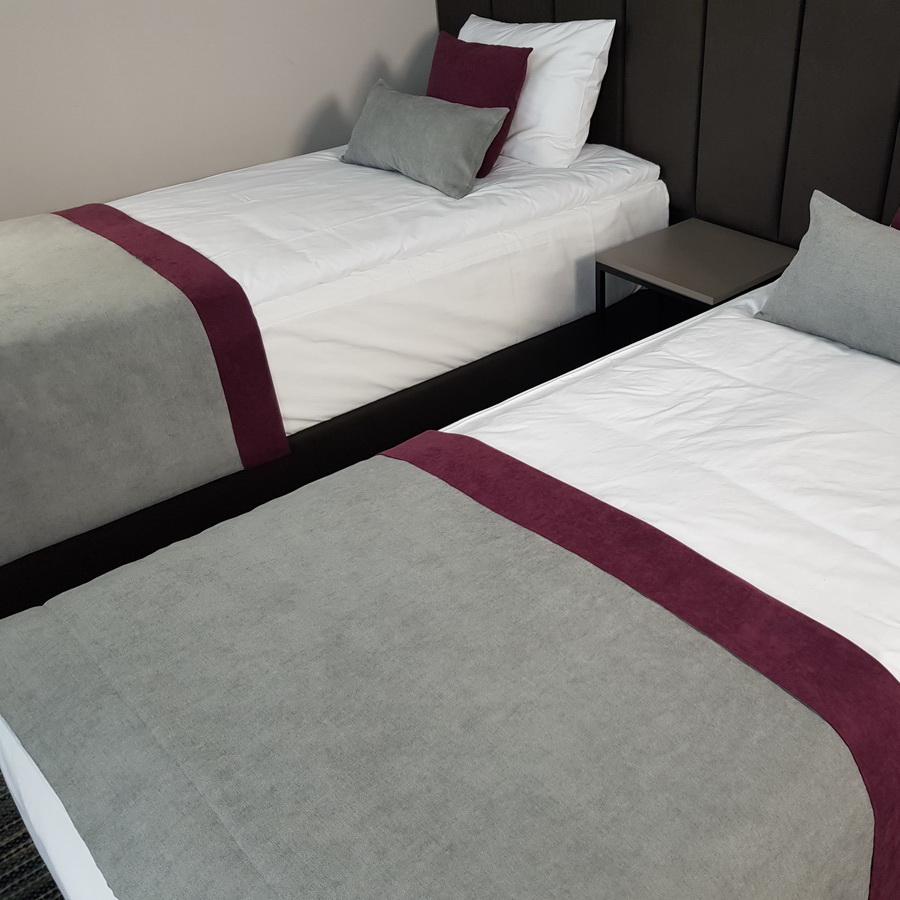 Narzuta na łóżko hotelowe w rozmiarze 80x140 cm za 10 sztuk. Narzuta szyta na zamówienie.