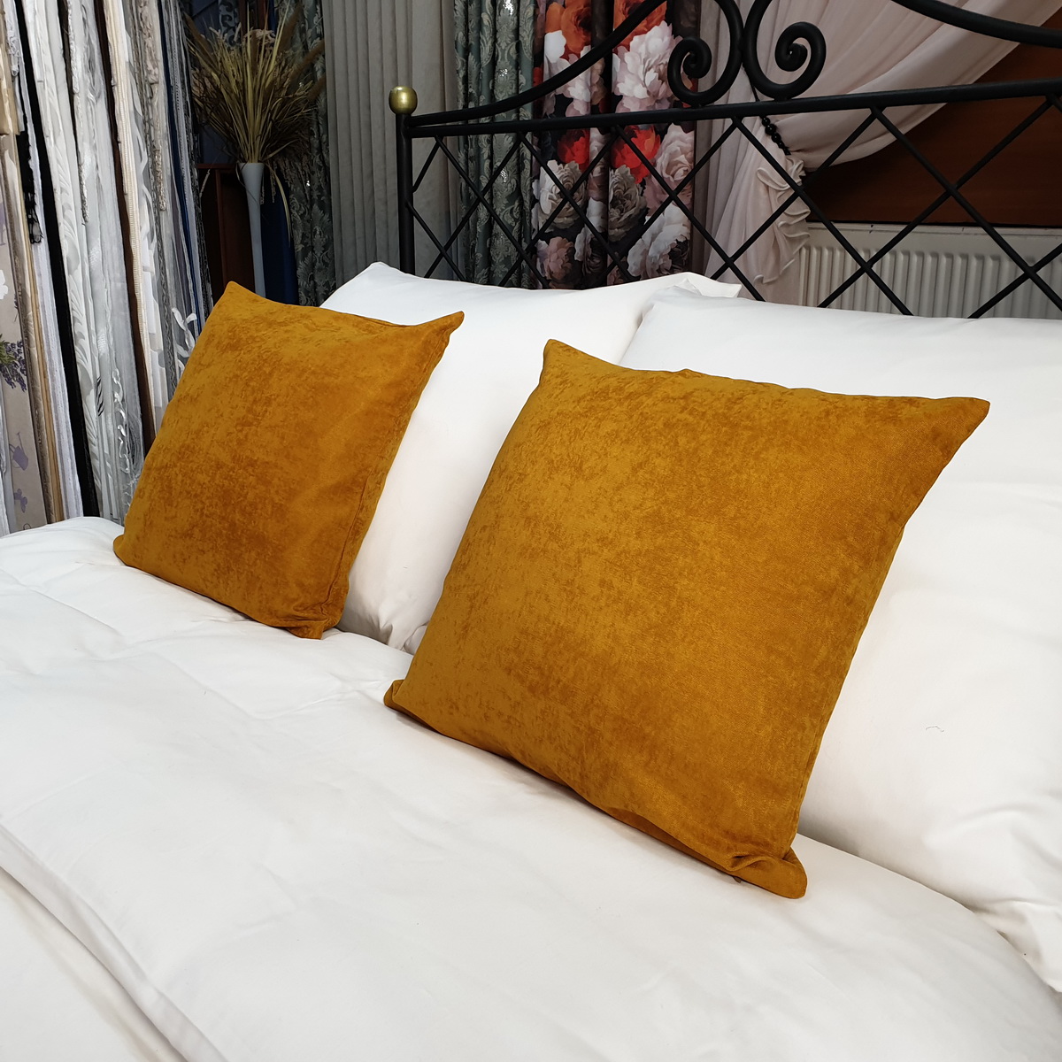 Poszewka w kolorze musztardowym zapinana na zamek.