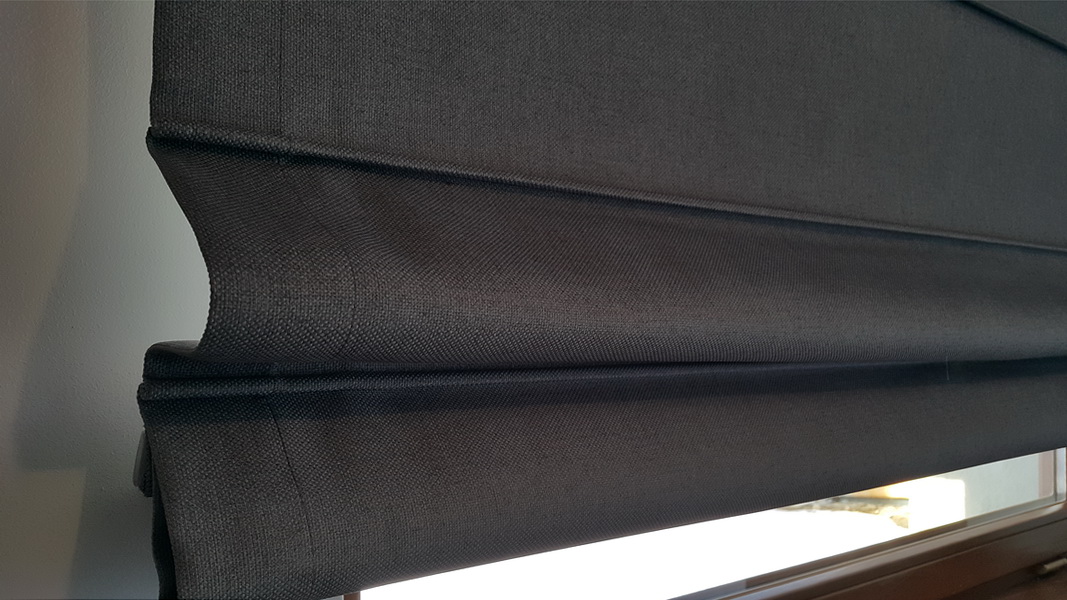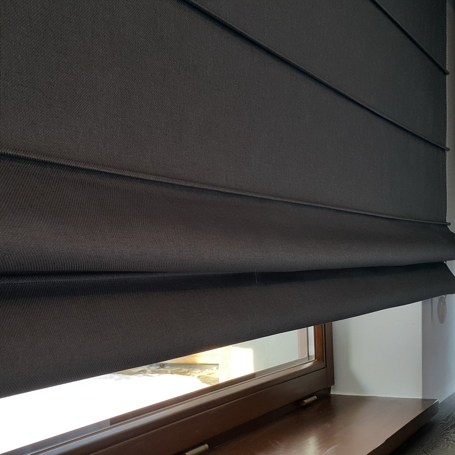 Rolety rzymskie zaciemniające uszyte są z grubej tkaniny Blackout.