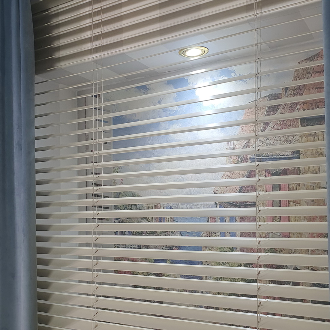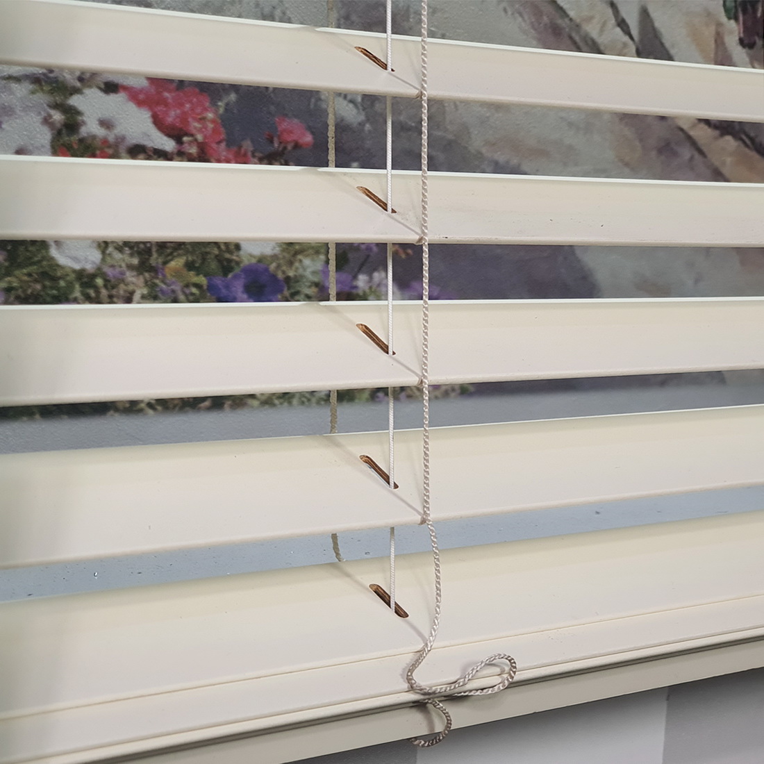 Prezentacja drabinki Megaview w żaluzji drewnianej 50 mm: