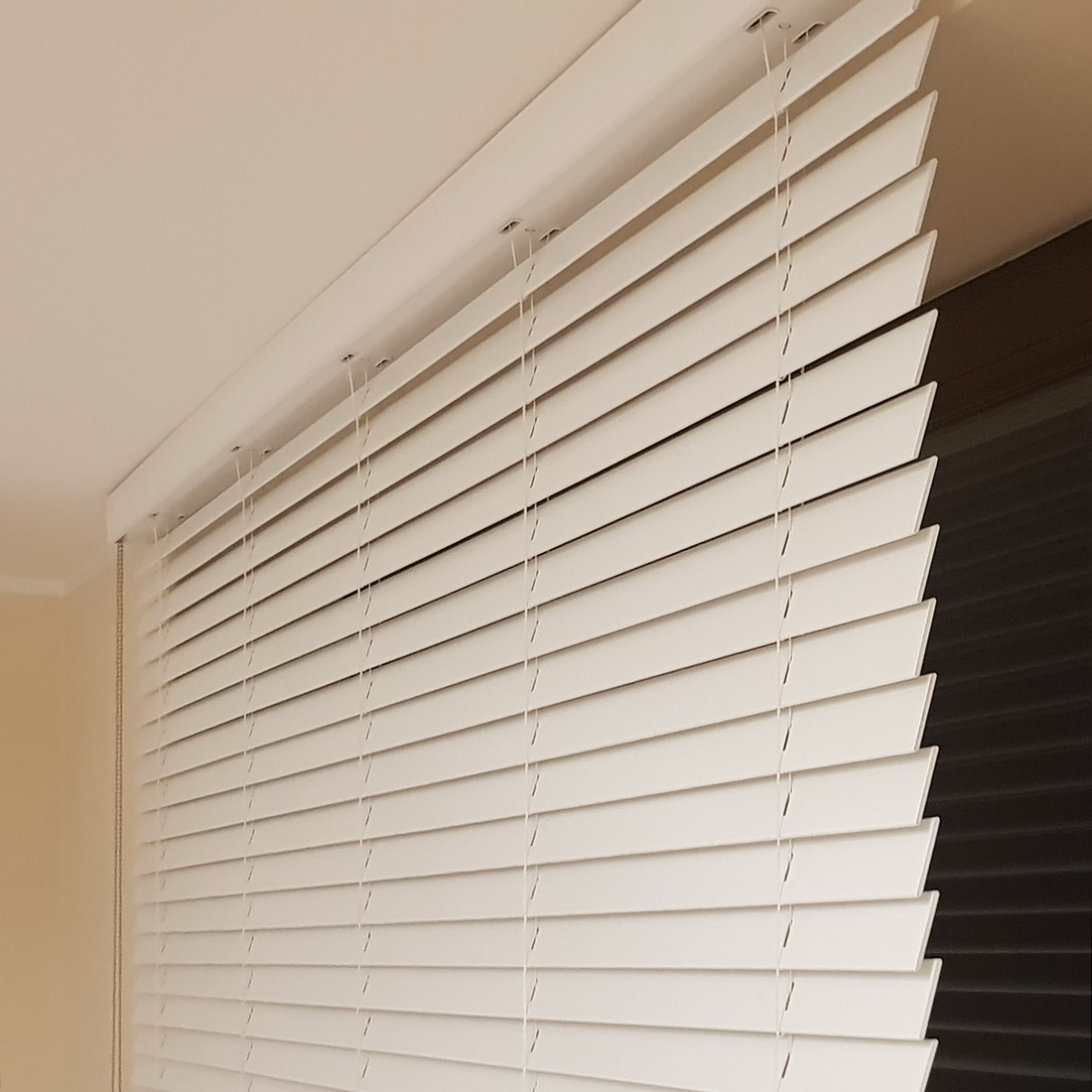 Żaluzje drewniane białe na wym. 180x160 cm Modern 50 mm Monocommando