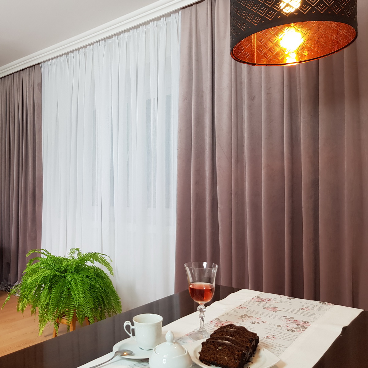 Kolor zasłony to wrzosowy.