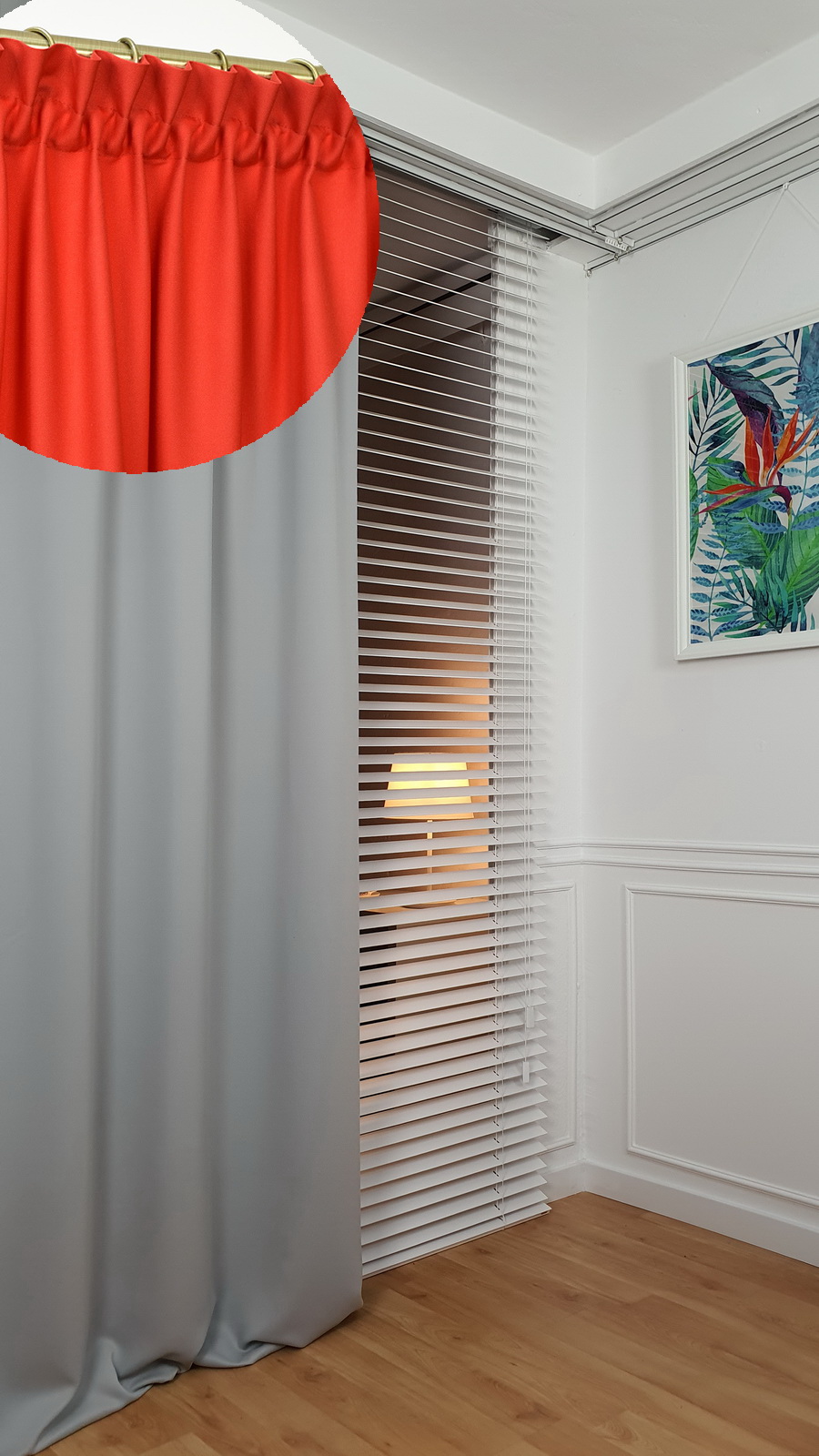 Szerokości i marszczenie zasłony nie jest stałe i można go regulować.