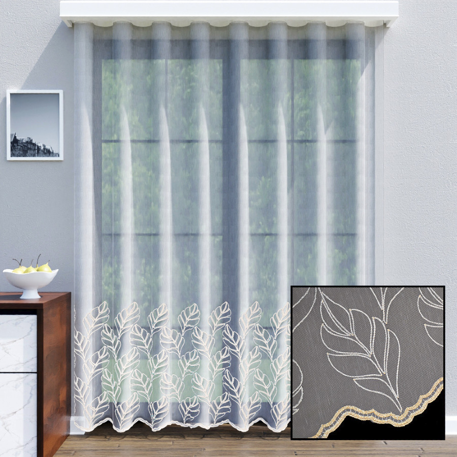 Firanka haftowana gotowa ze wzorem złotych liści 400x250 cm MAG677/2. Na wymiar