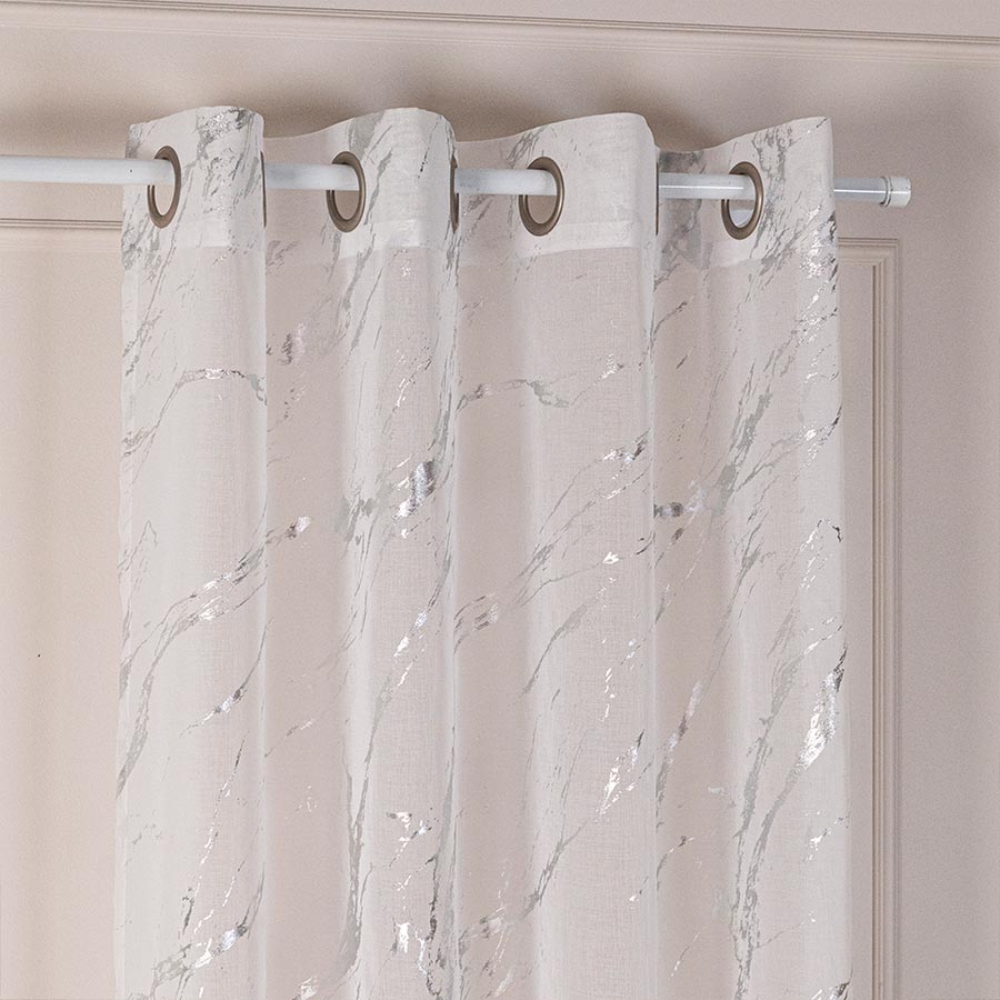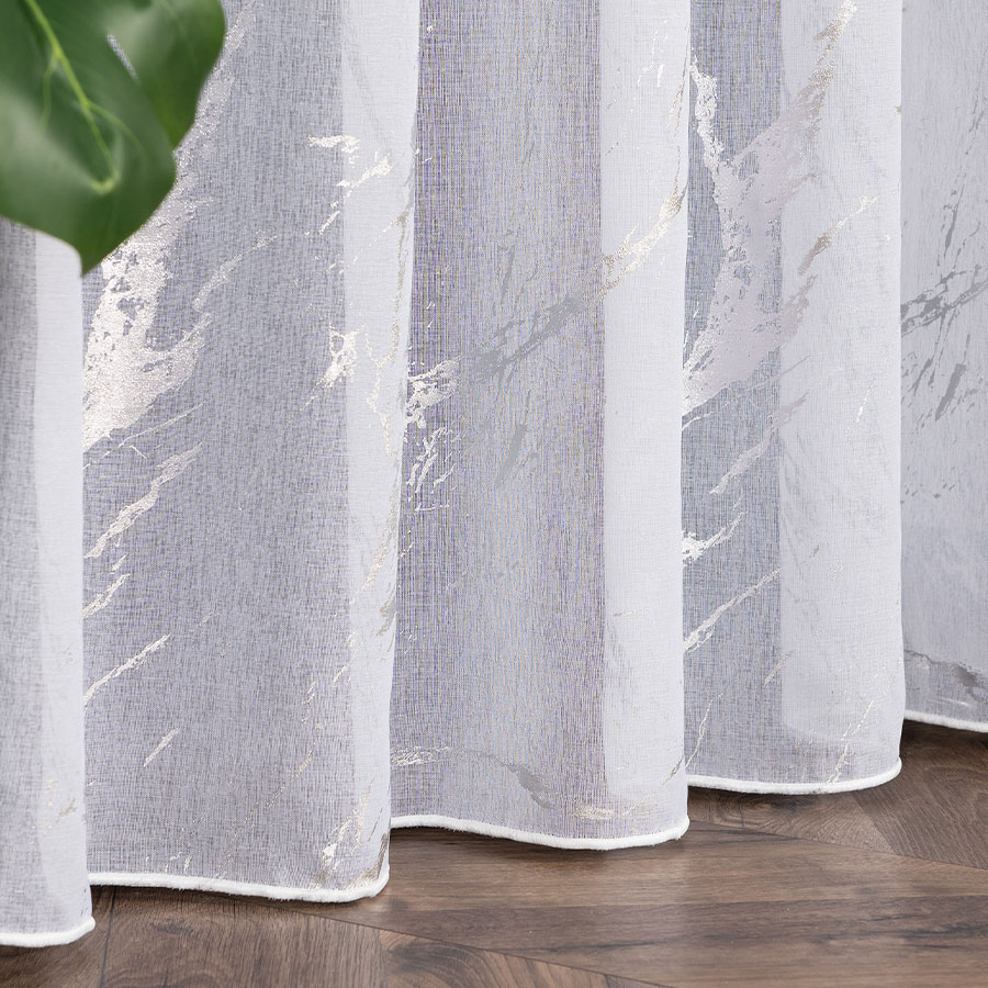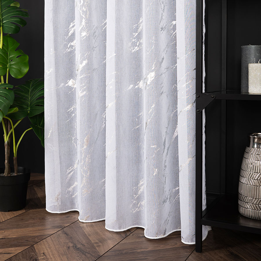 Firana gotowa na przelotkach ze srebrnym nadrukiem marmuru 140x250 cm 001/W10