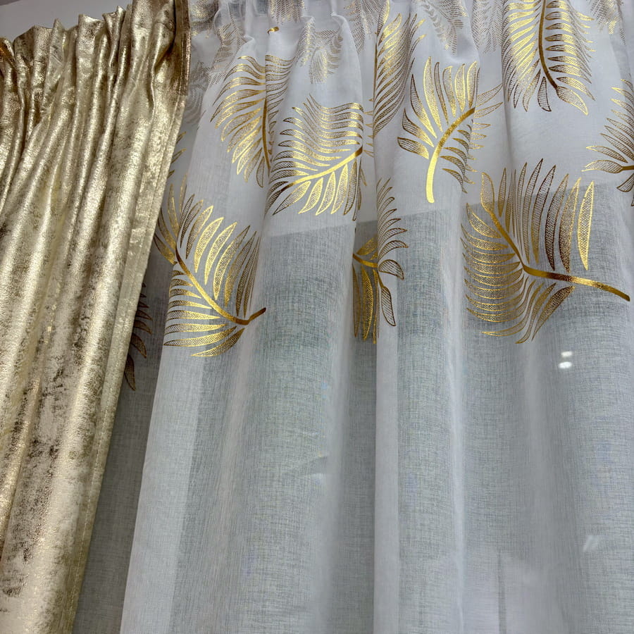 Firana gotowa na taśmie ze złotym zdobieniem 140x250 cm 004/W4
