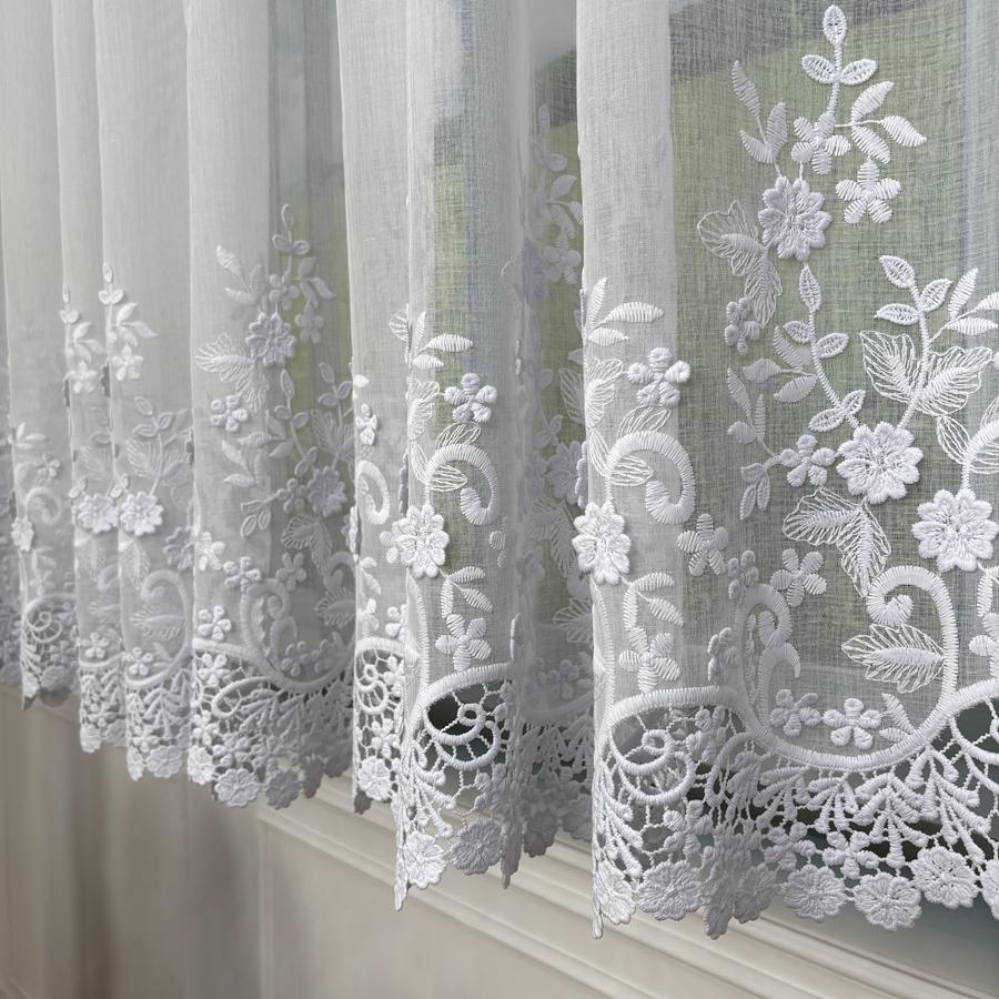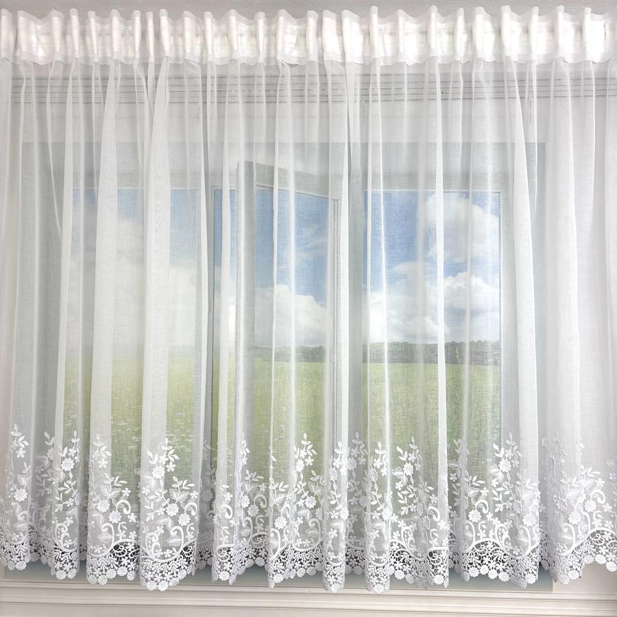 Firana haftowana na taśmie z aplikacją gipiurową w kwiaty 400x145 cm H20