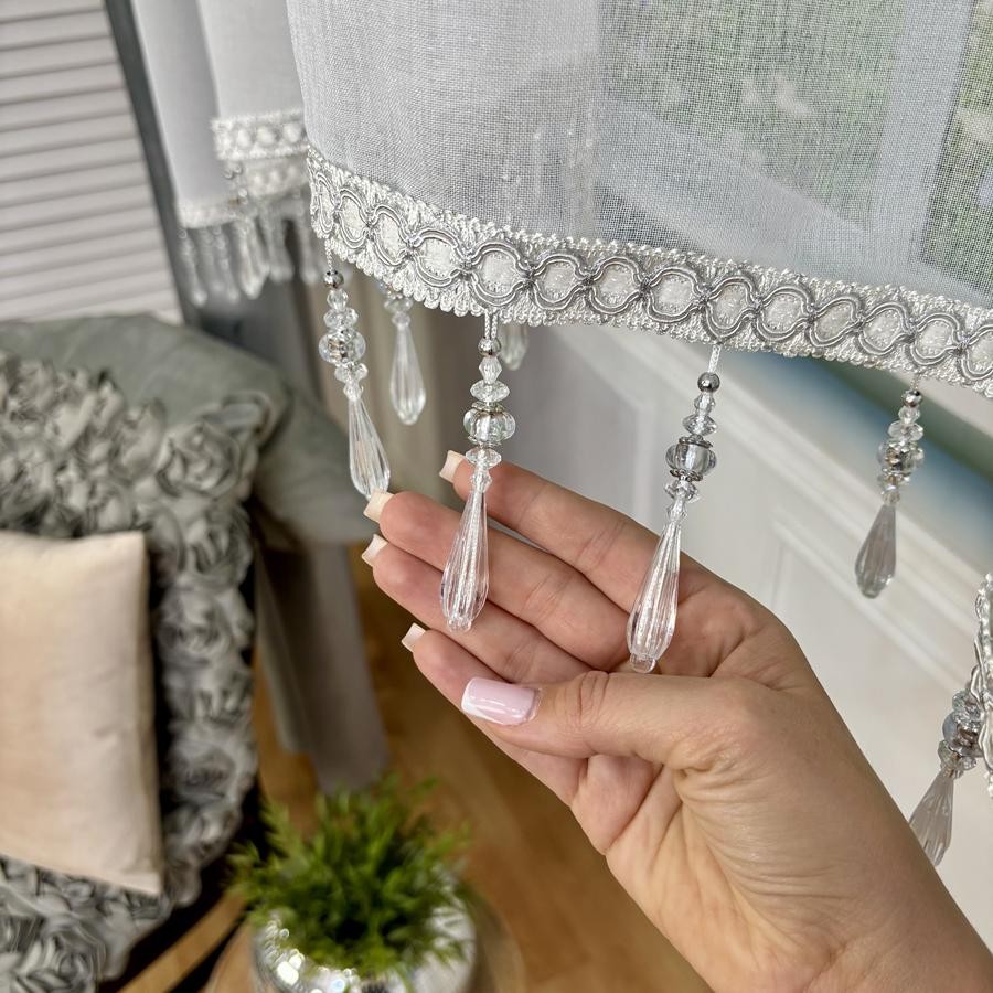 Firana na taśmie z gipiurową aplikacją i koralikami 300x160 cm H21