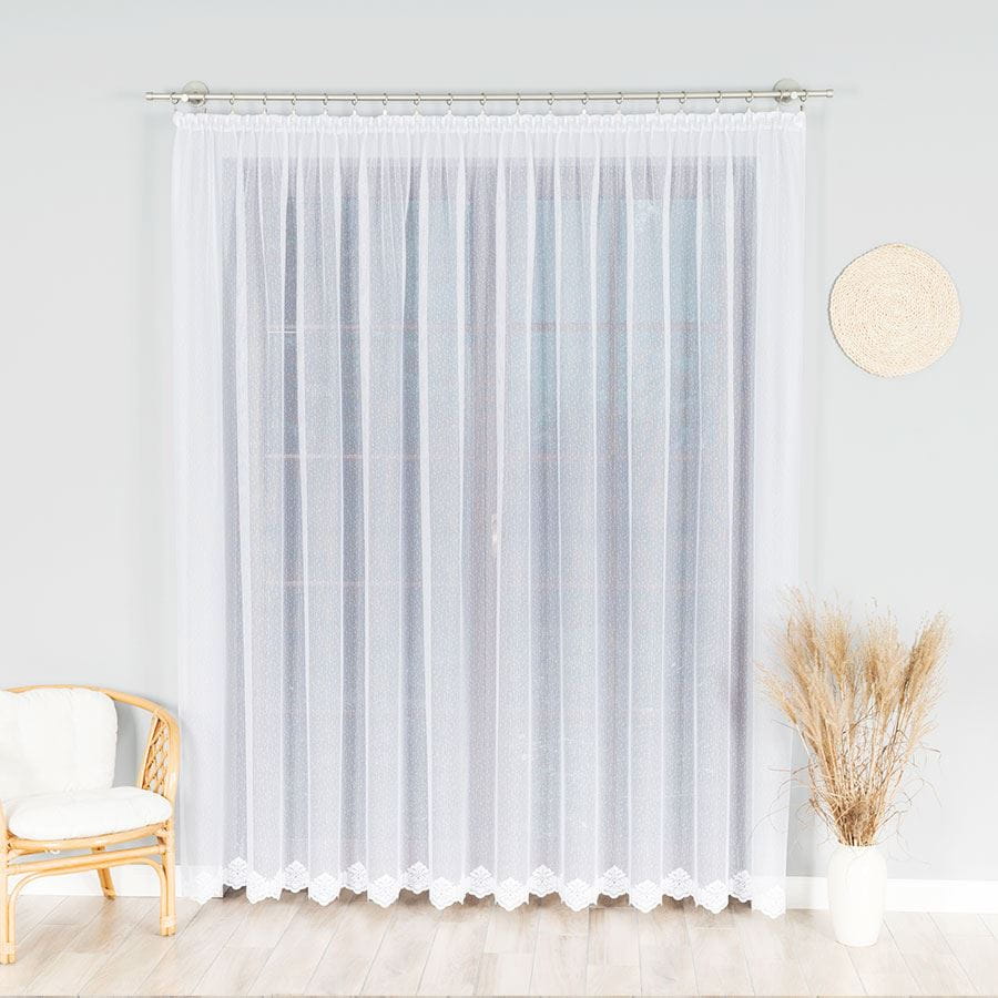 Firanka biała gotowa na taśmie ze wzorem u dołu 300x250 cm MAG639. Na wymiar
