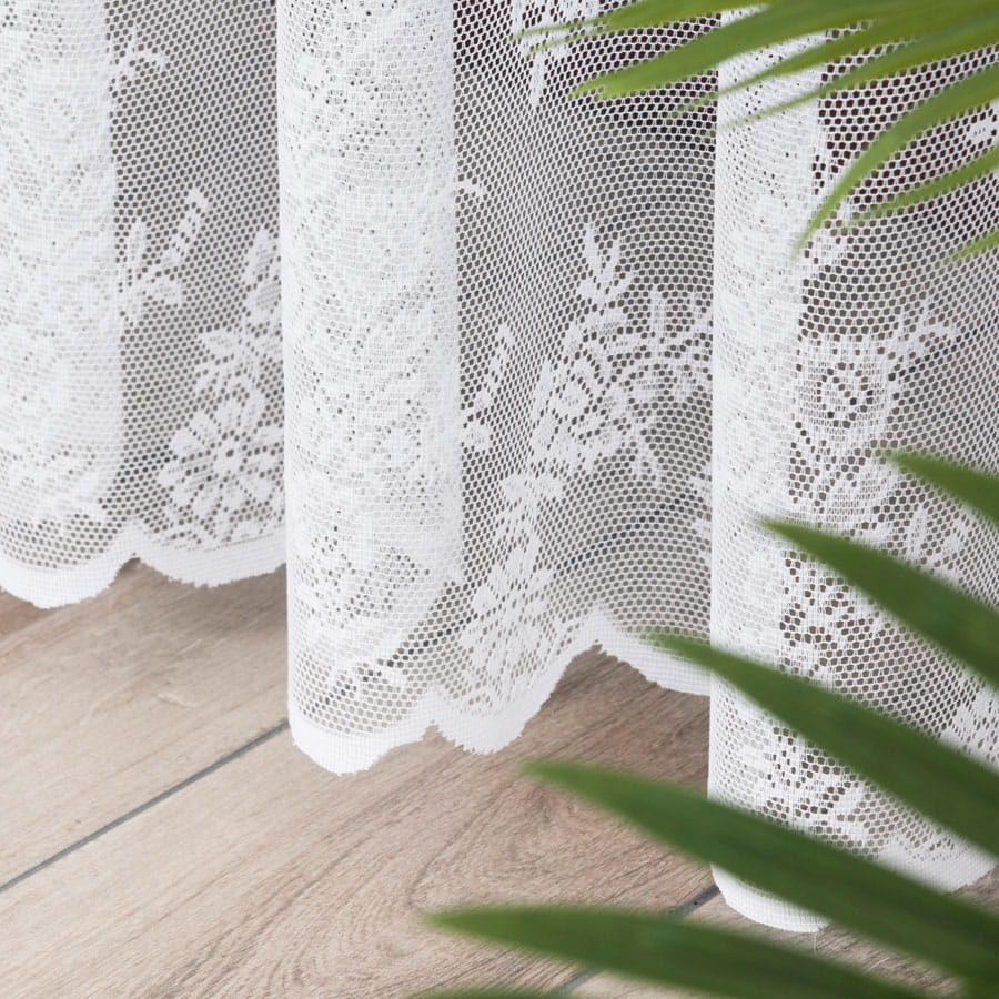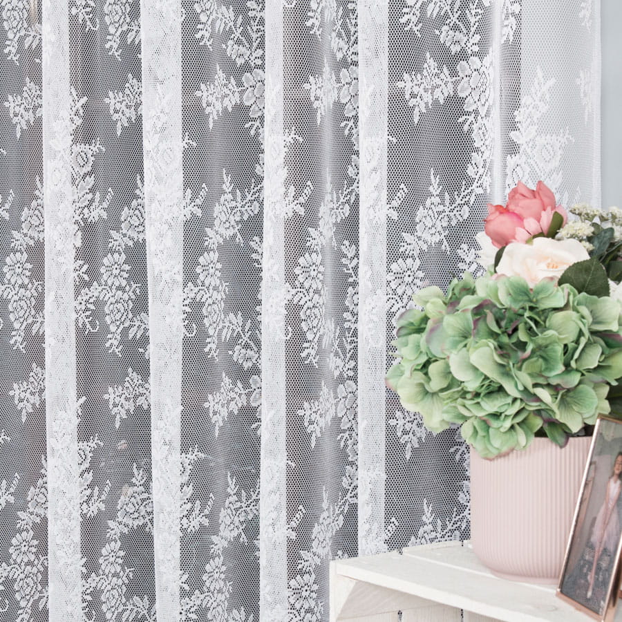 Firanka biała gotowa ze wzorem kwiatowym 600x250 cm MAG622. Na wymiar