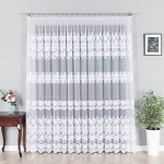 Firanka biała żakardowa pasowa w kwiaty wysokość 250 cm 049360