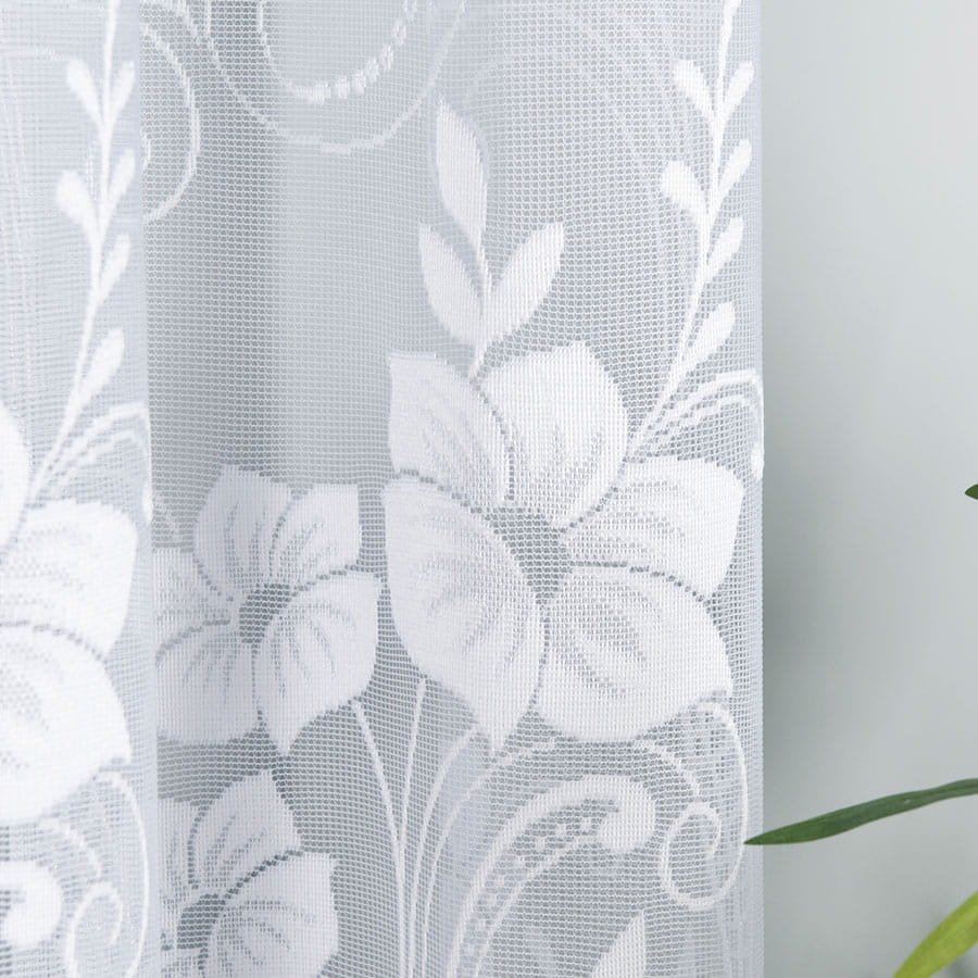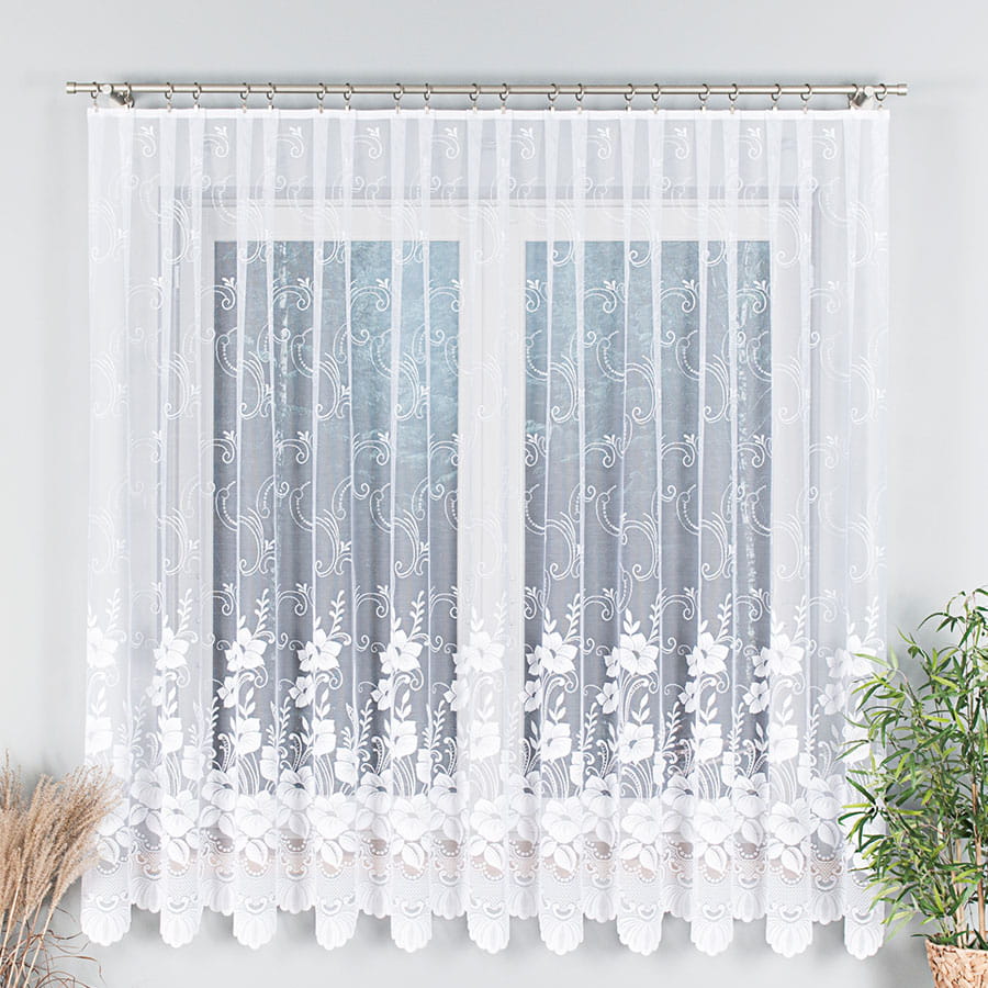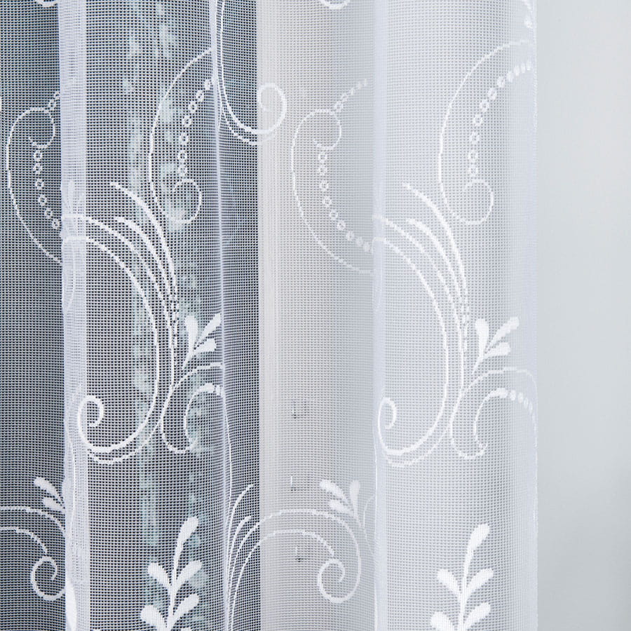 Firanka gotowa biała na taśmie z kwiatowym wzorem 300x180 cm MAG621. Na wymiar