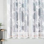 Firanka gotowa biała ze wzorem liści rozmiar 800x180 cm MAG651. Na wymiar