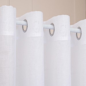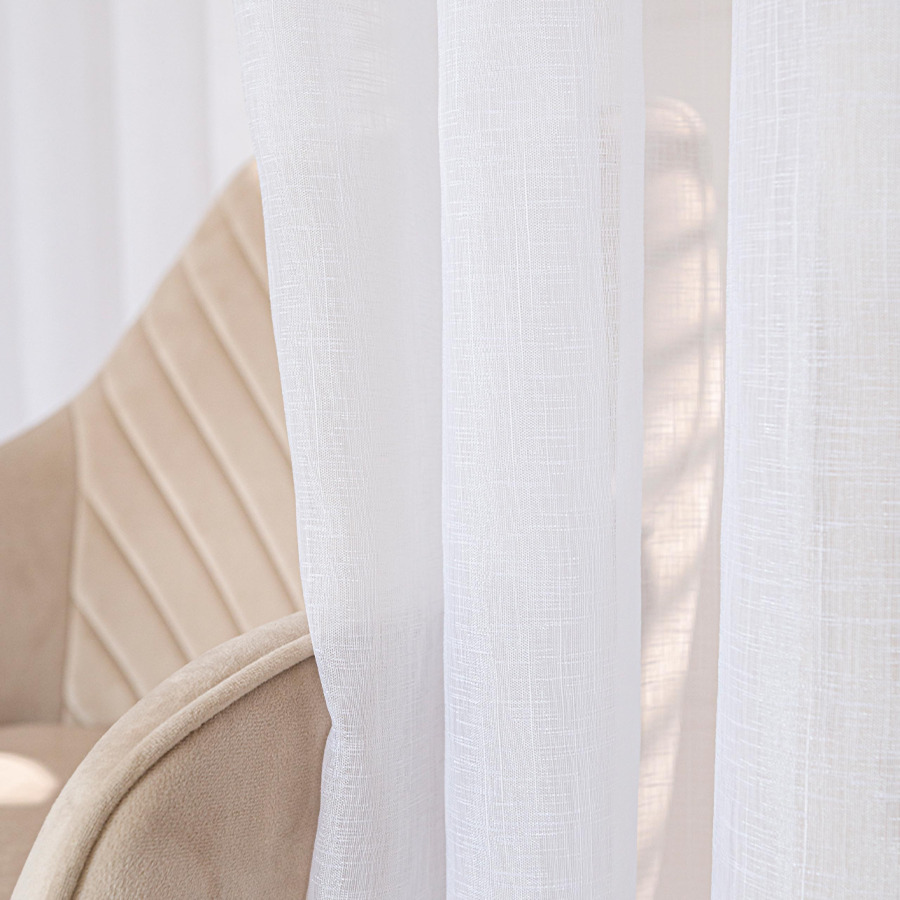 Firanka uszyta z lekkiej etaminy, charakteryzuje się trwałością i łatwością w pielęgnacji. Główną cechą wyróżniającą firankę jest imitacja naturalnych tkanin, takich jak len czy bawełna. Struktura przypomina drobne, nieregularne przeploty nici, co nadaje firance organiczny i nieco rustykalny charakter. Firanka nie zaciemnia pomieszczenia, a jedynie subtelnie rozprasza światło słoneczne, tworząc przyjemną atmosferę i chroniąc przed nadmiernym nasłonecznieniem.