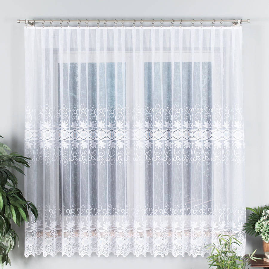 Firanka dostępna również w rozmiarach: szerokość (na prosto przed marszczeniem) x wysokość