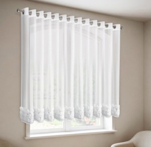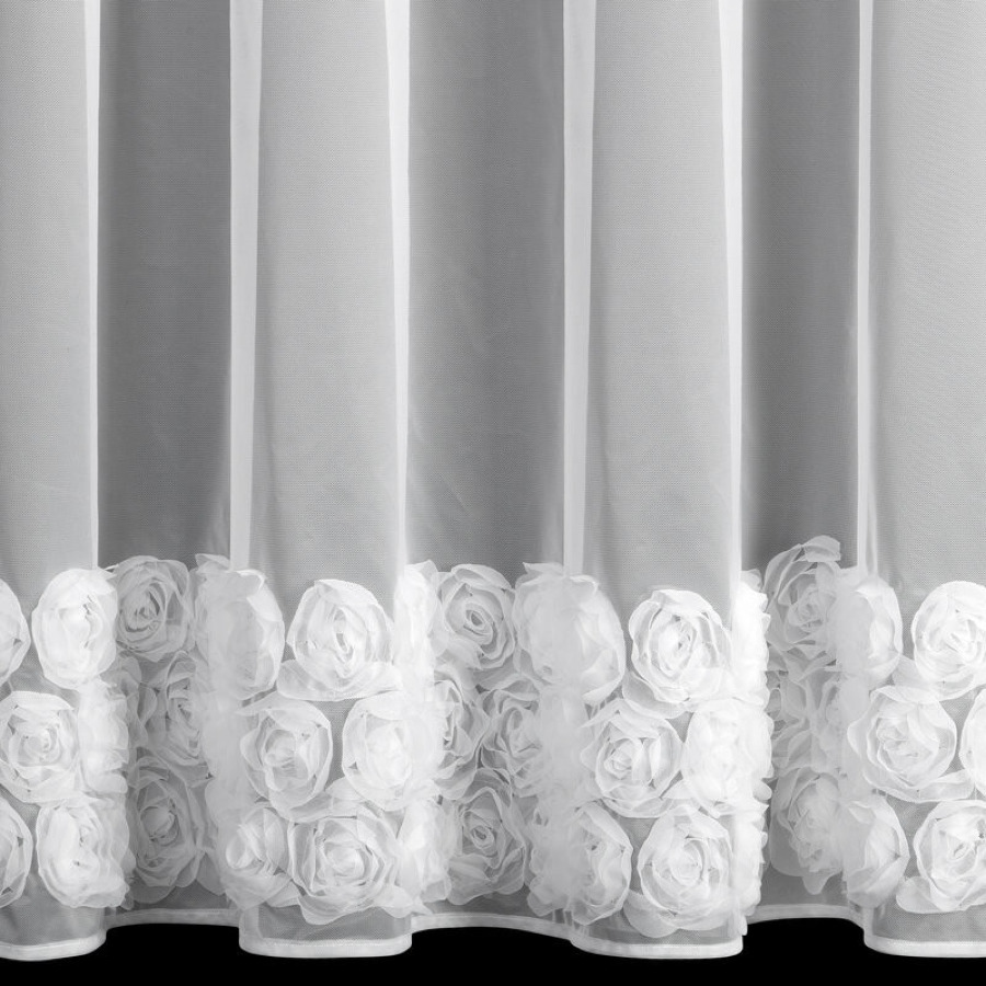 Firanka na przelotkach z naszytymi różami u dołu firany