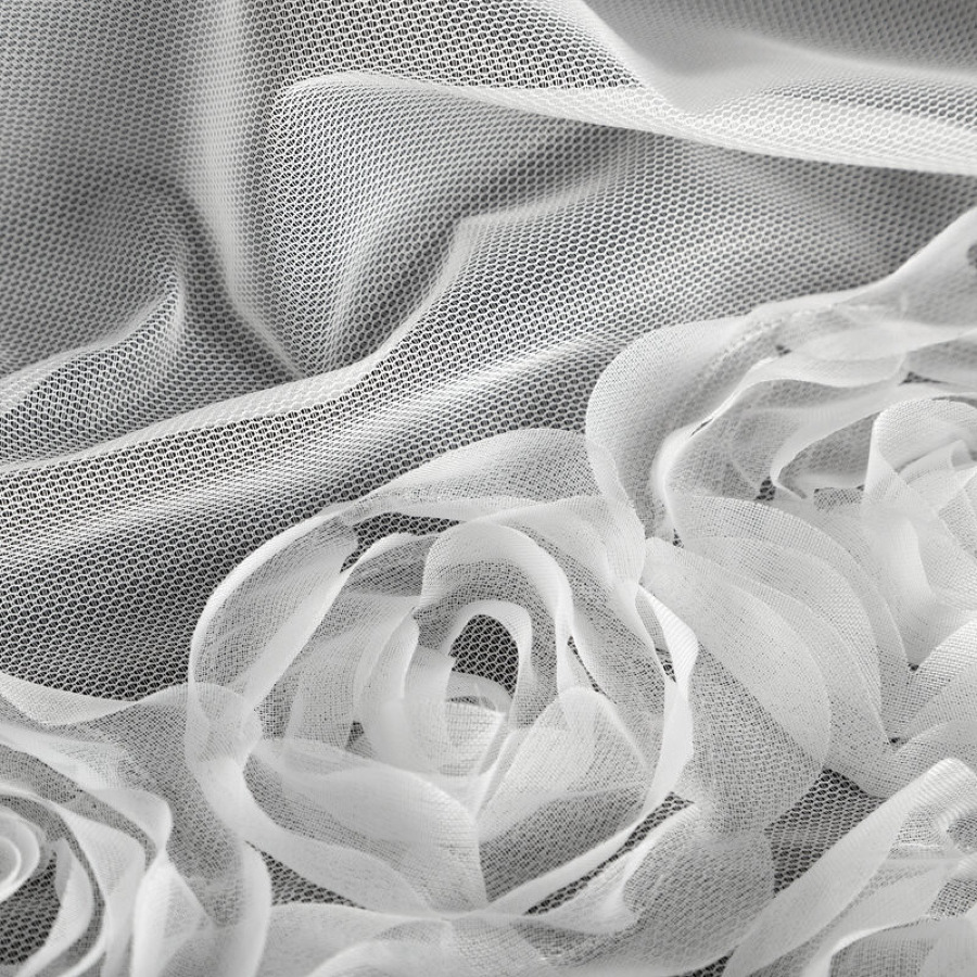 to dekoracja okienna, która łączy lekkość i zwiewność materiału z eleganckim, romantycznym motywem kwiatowym. Firanka wykonana z delikatnej, przezroczystej i siateczkowej tkaniny pięknie się układa i przepuszcza dużo światła, dodając wnętrzu jasności i przestronności. Najważniejszym elementem dekoracyjnym jest pas naszytych róż umieszczony w dolnej części firany, których obecność nadaje firanie romantyczny charakter.