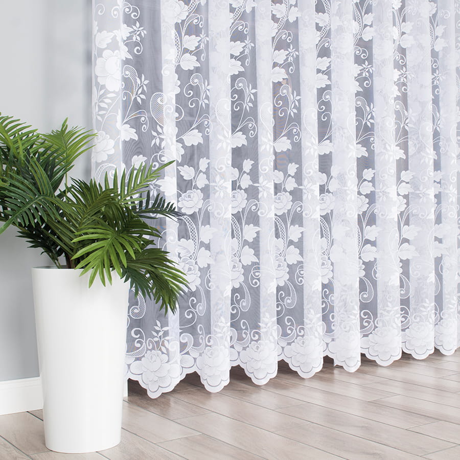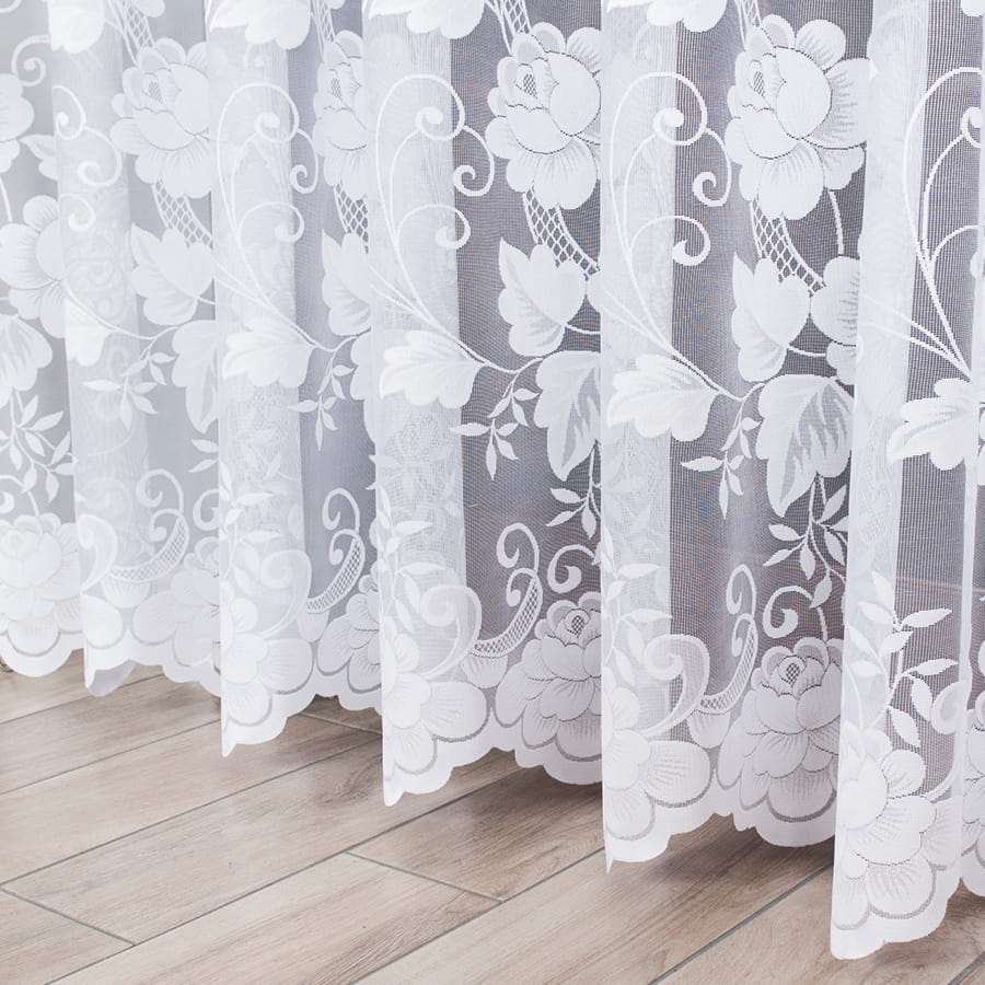 Firanka gotowa żakardowa na taśmie w kwiaty 400x250 cm MAG648. Na wymiar