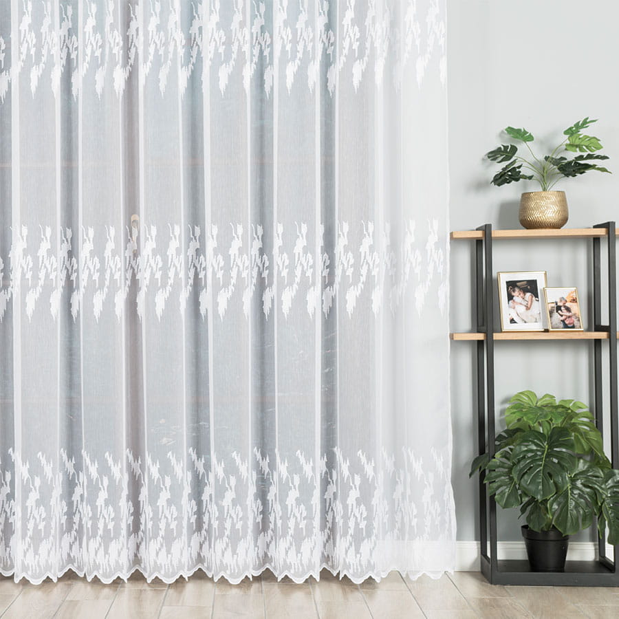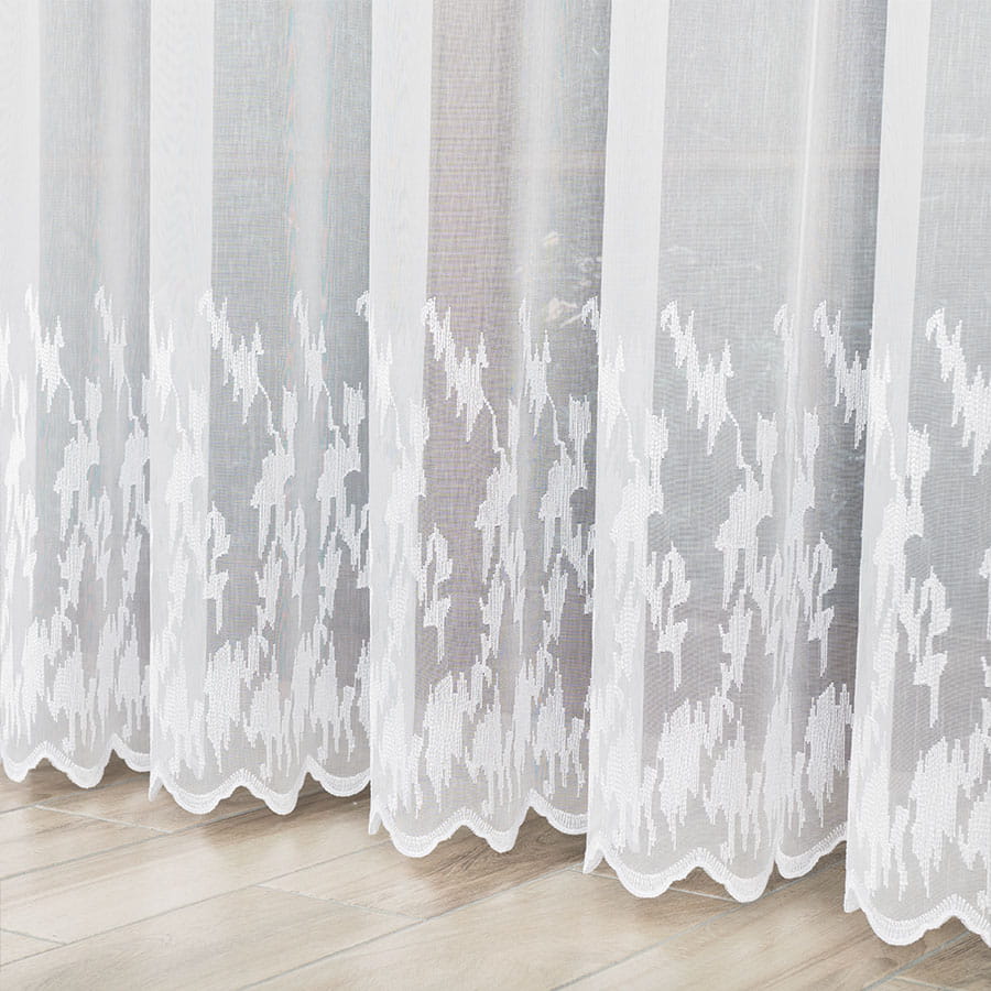 Dekoracyjna firanka haftowana biała, wysokość 280 cm.