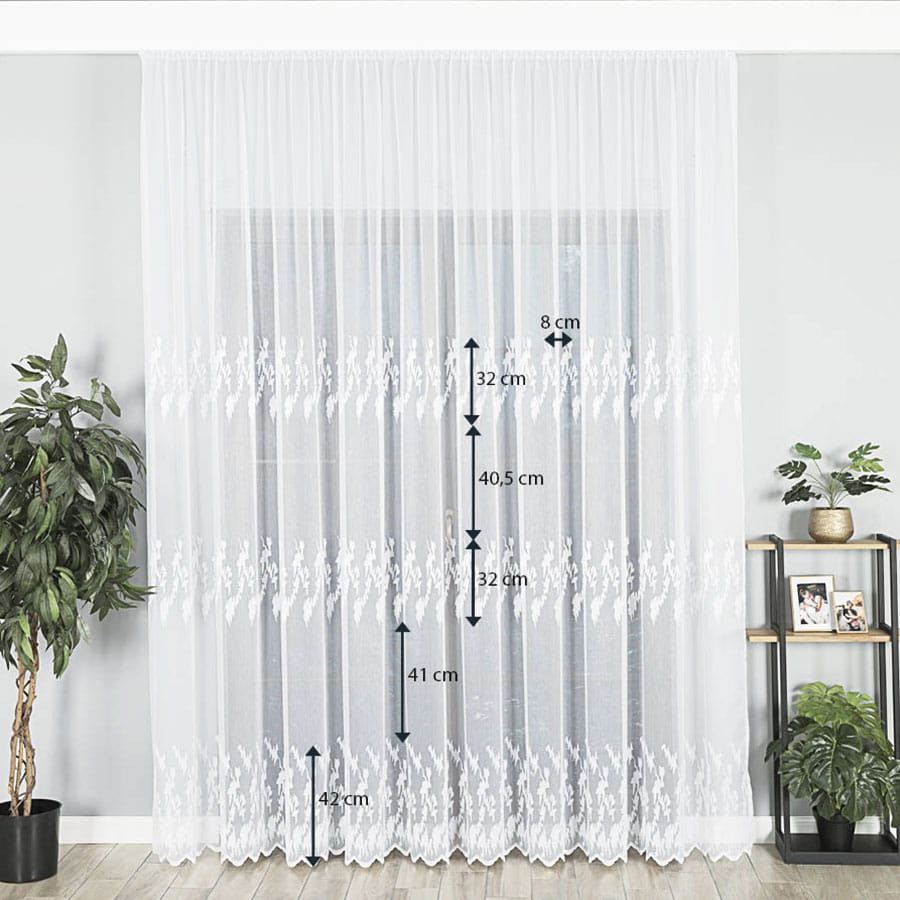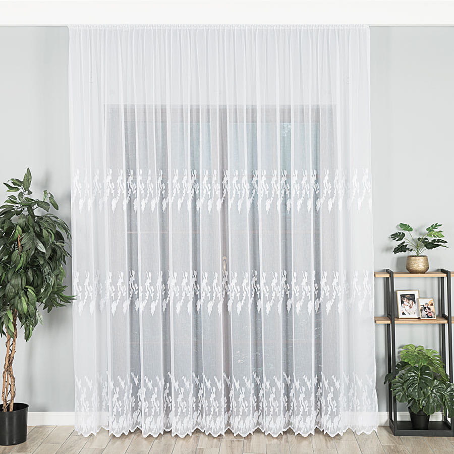 Firanka haftowana biała ze wzorem pasowym wysokość 280 cm 013777