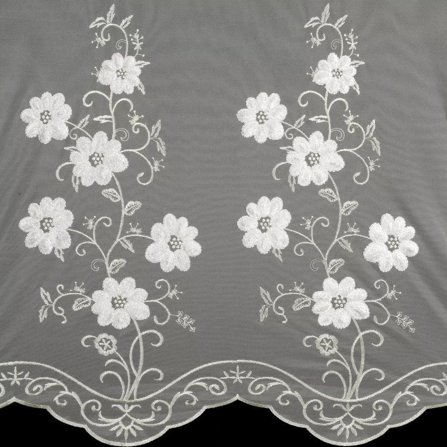 Firanka haftowana na przelotkach z kwiatowym wzorem 140x250 cm M110