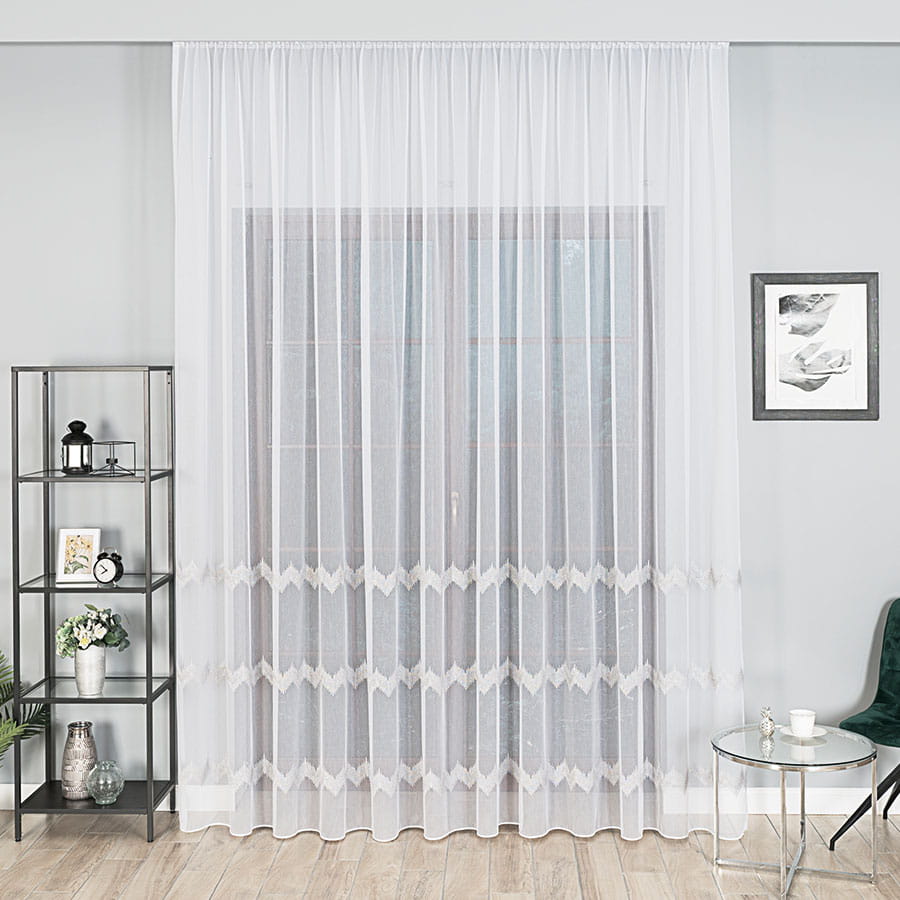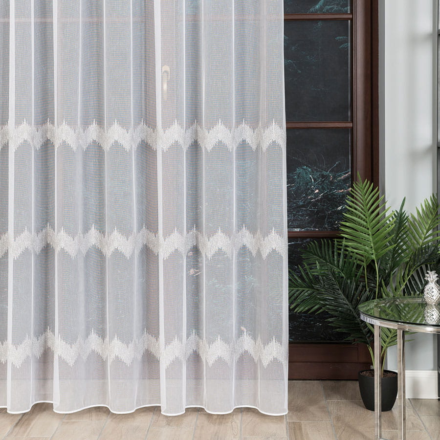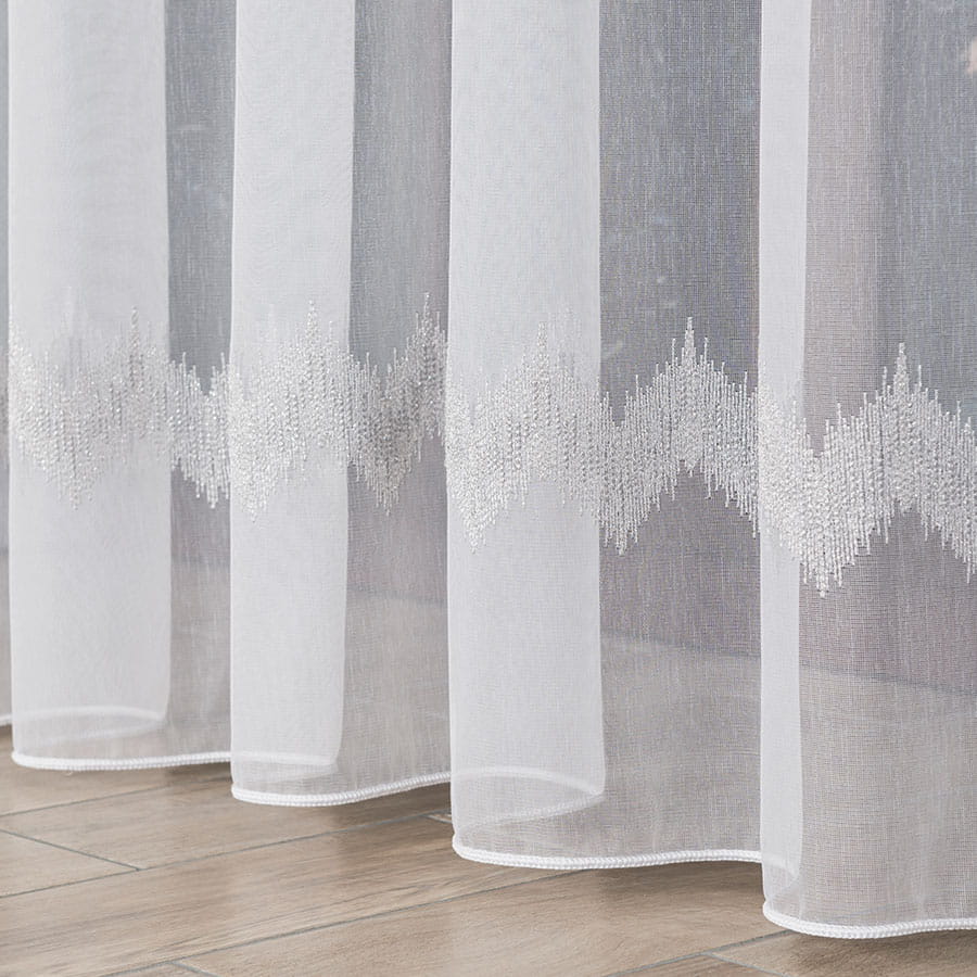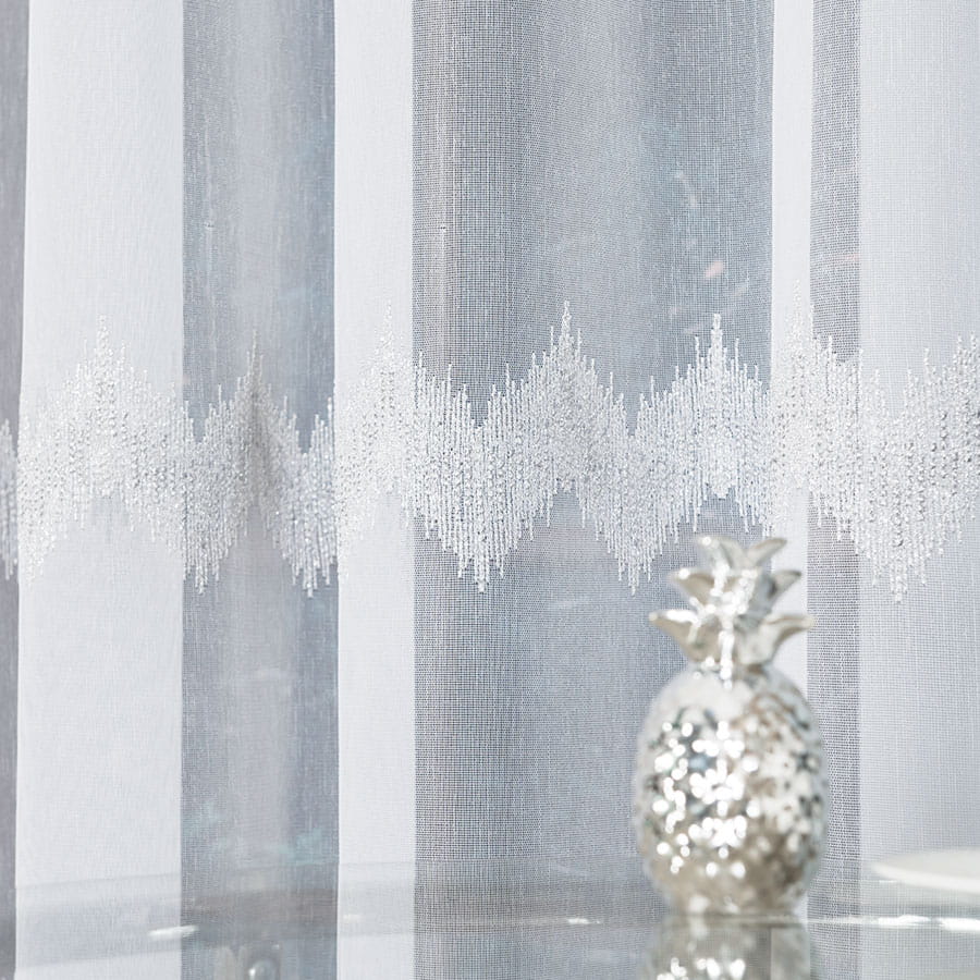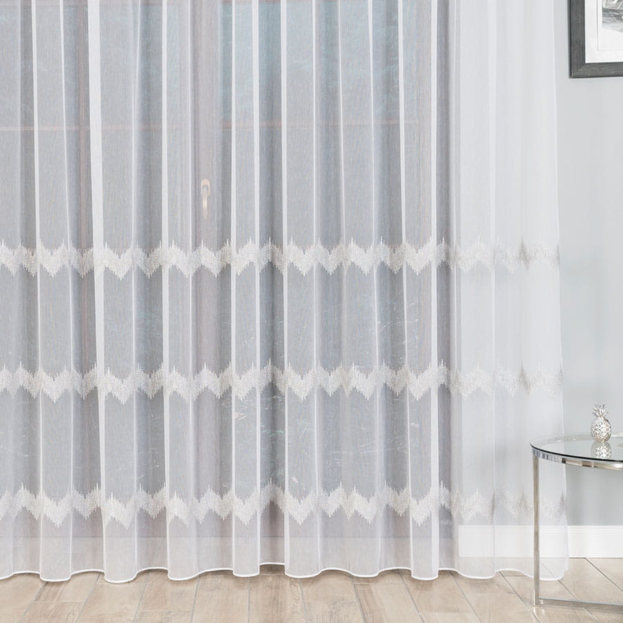 Firanka haftowana z ołowianką kolor biały z szarym i srebrnym wysokość 280 cm 112750