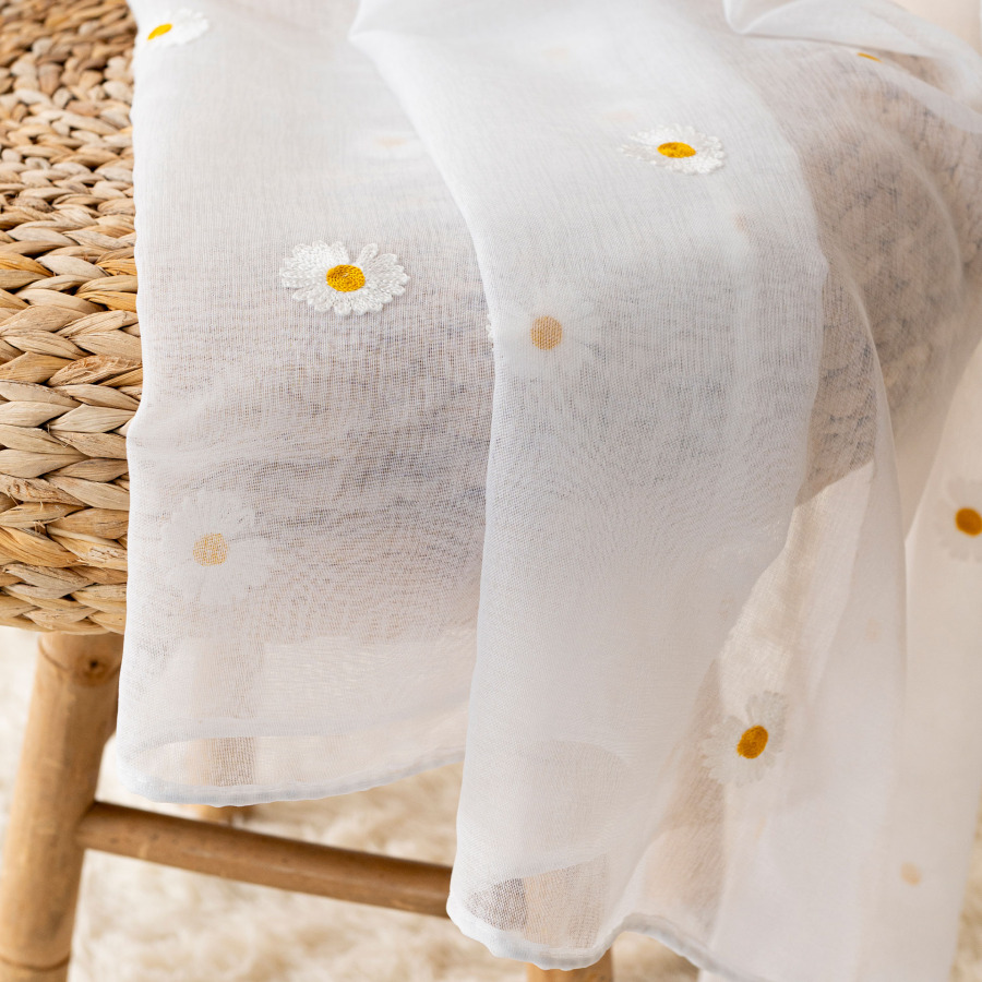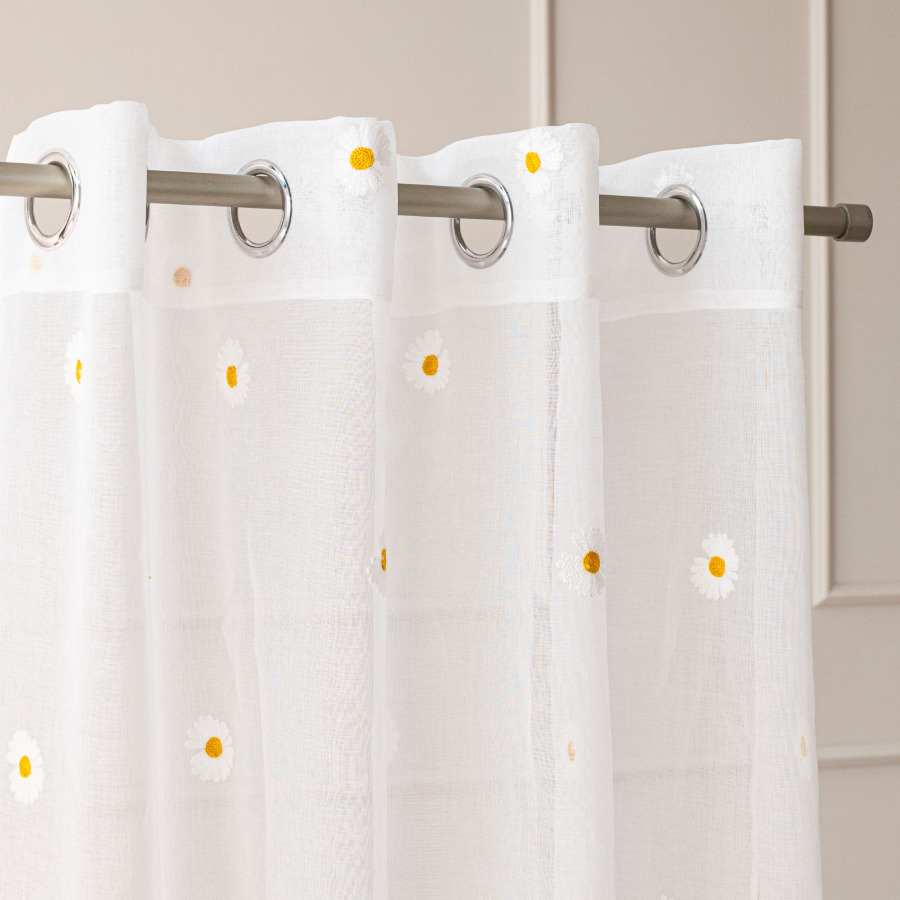 Firanka na przelotkach z haftowanym wzorem stokrotek 140x250 cm W20