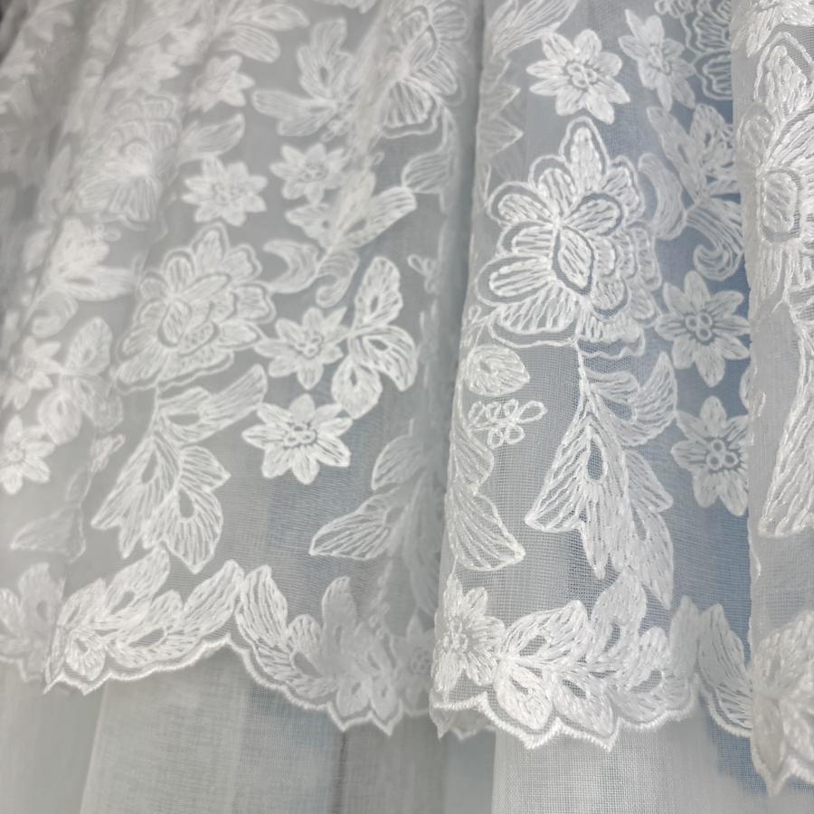 Firanka na taśmie biała w łuku z kwiatowym haftem 400x150 cm H10