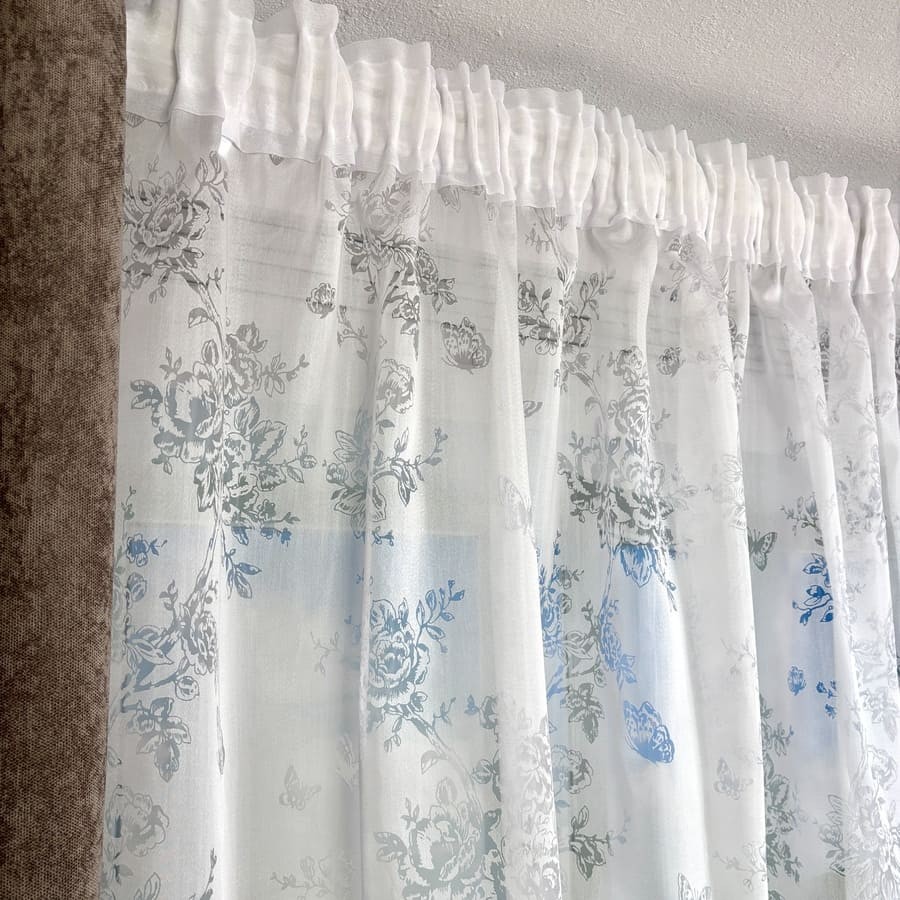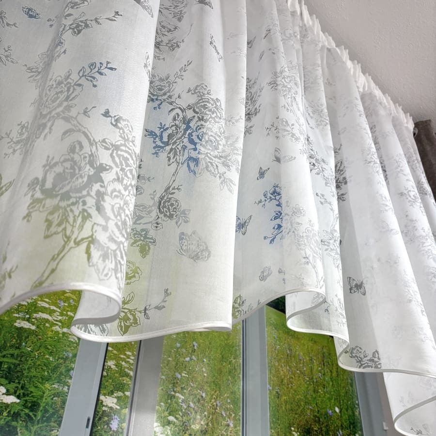 Dekoracyjna firanka gotowa na taśmie z kwiatowym wzorem, rozmiar 300x150 cm.