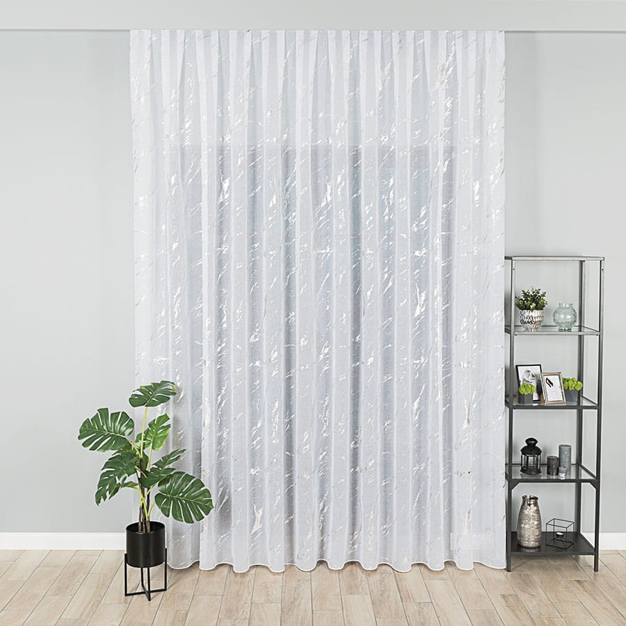 Firanka z ołowianką biała ze srebrnym nadrukiem wysokość 300 cm MARMA
