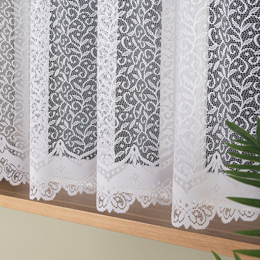 Biała firanka, ozdobiona dekoracyjnym wzorem po całości, wykonana jest z wysokiej jakości żakardu, który zapewnia trwałość i elegancję na długie lata. Jest niezwykle łatwa w pielęgnacji - nie wymaga prasowania, a dzięki wysokiej jakości materiałowi, z którego została wykonana, jest trwała i odporna na uszkodzenia. Oferując wiele możliwości aranżacyjnych i dekoracyjnych jest doskonałym dodatkiem do każdego wnętrza.