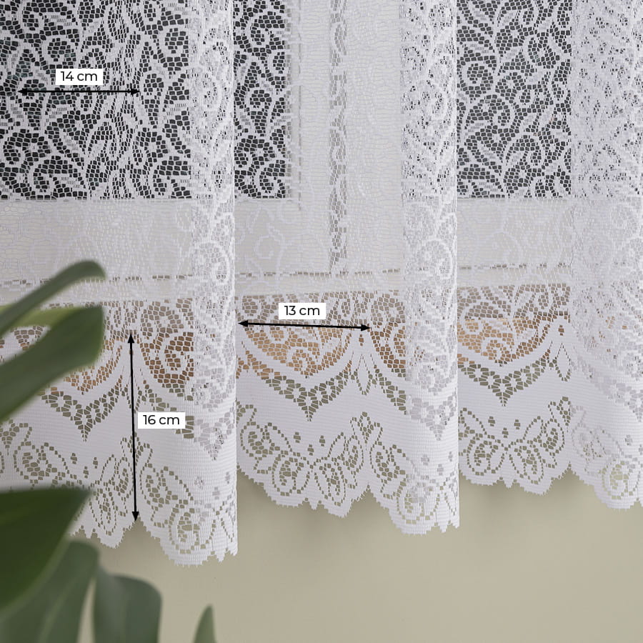 Firanka dostępna w metrażu, objęta tolerancją wysokości w granicach +/-3%.