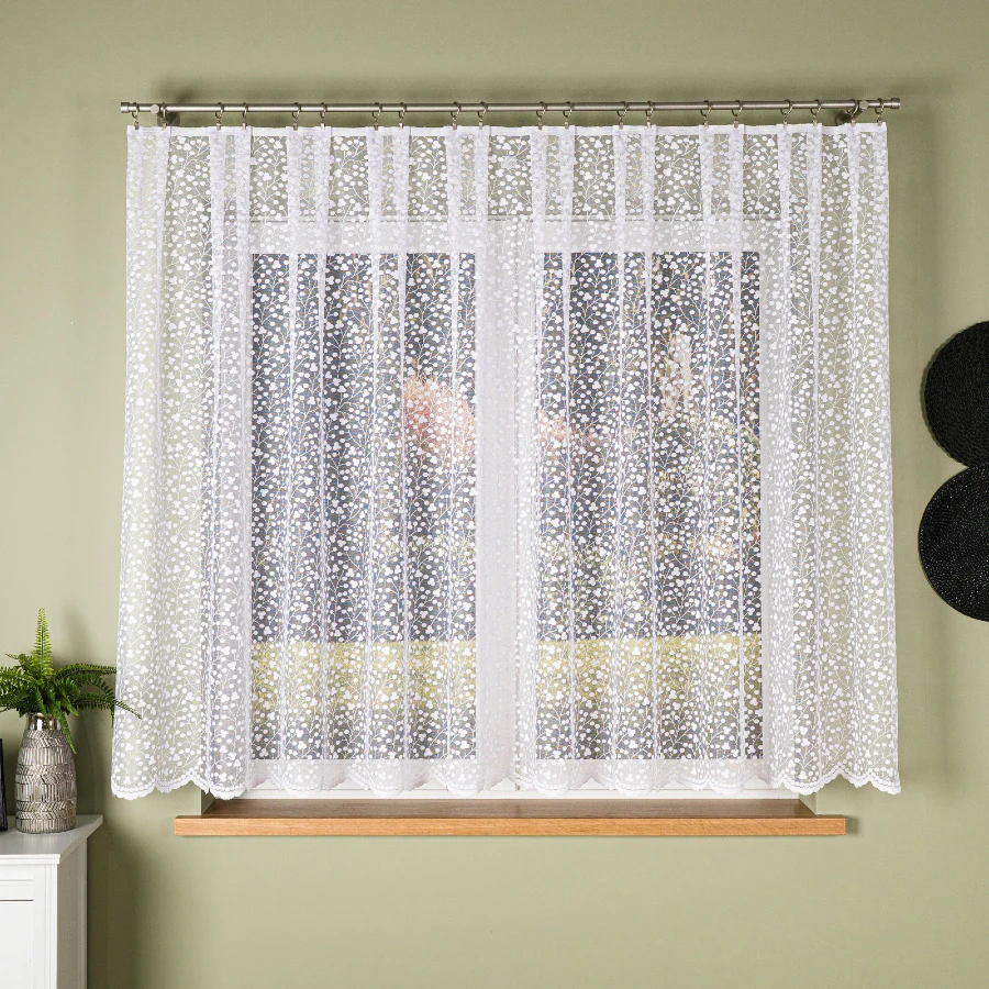 Firanka dostępna w metrażu, objęta tolerancją wysokości w granicach +/-3%.