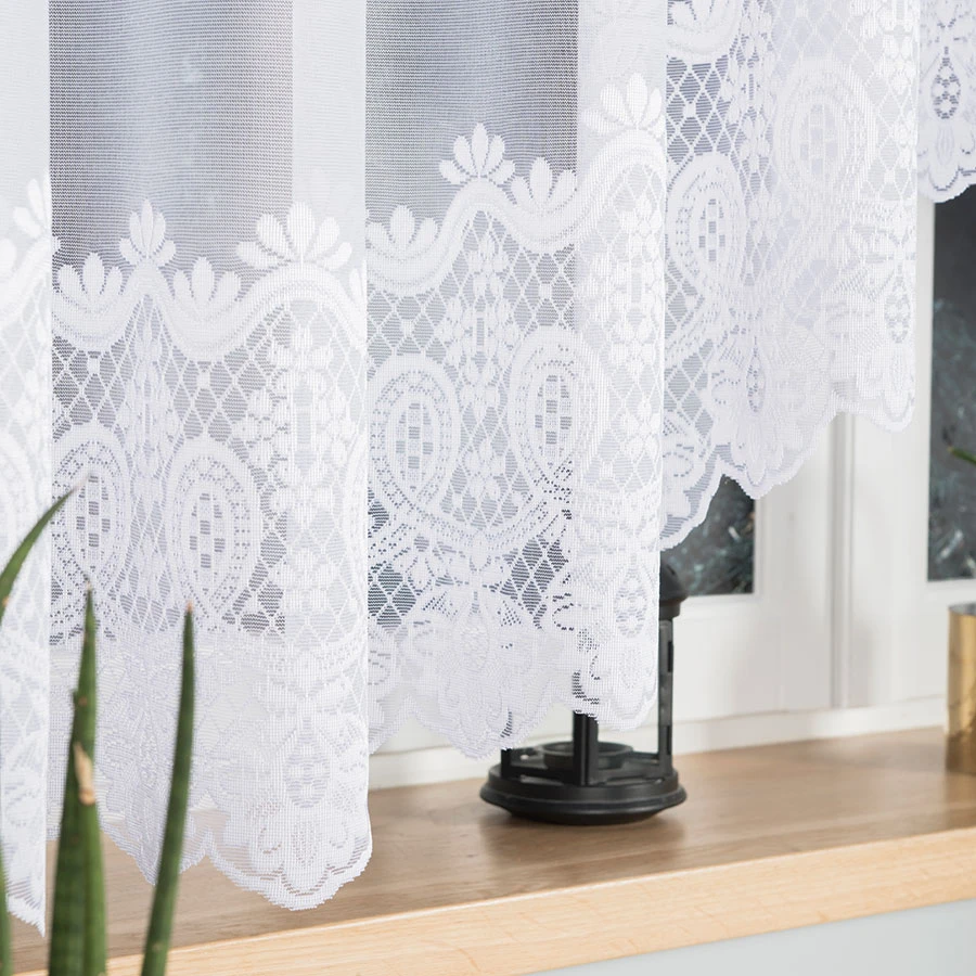 Ta firana to idealne połączenie tradycyjnego żakardu z nowoczesnym designem. Wyrazisty, pasowy wzór kwiatowy nadaje jej charakteru, a brak konieczności prasowania sprawia, że jest niezwykle praktyczna w codziennym użytkowaniu. Subtelnie zdobiony dół w formie łuku sprawia, że okno zyskuje lekkość i optycznie powiększa pomieszczenie. Doskonale sprawdzi się w kuchni, jadalni czy przytulnym salonie, tworząc domową atmosferę bez zbędnego wysiłku.