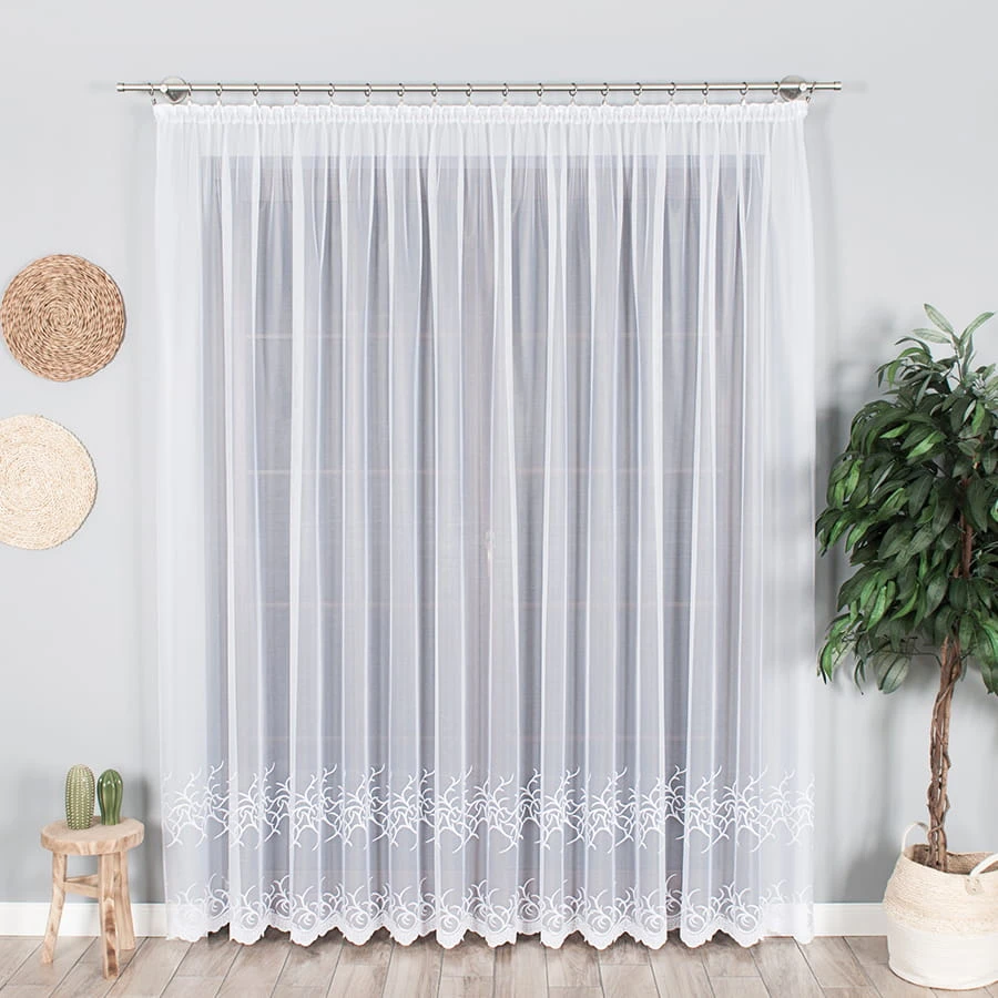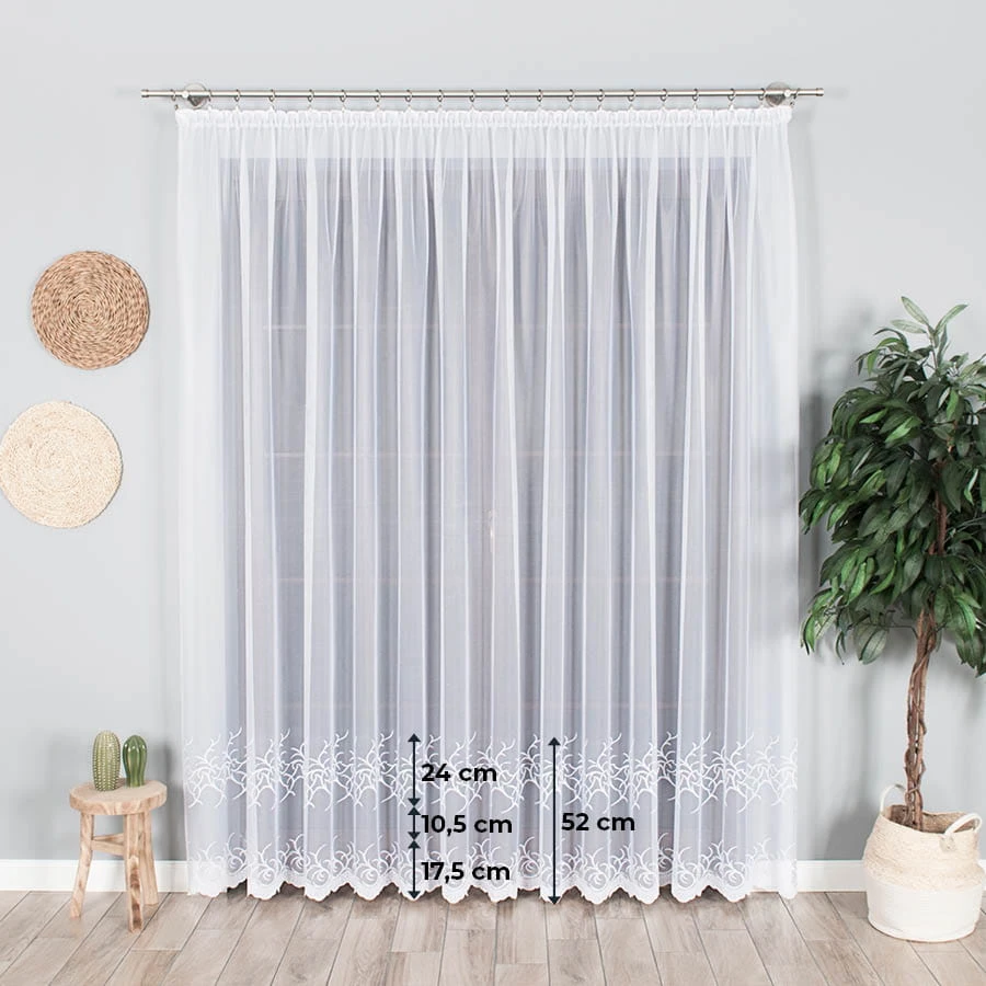 Firanka dostępna również w rozmiarach: szerokość (na prosto przed marszczeniem) x wysokość
