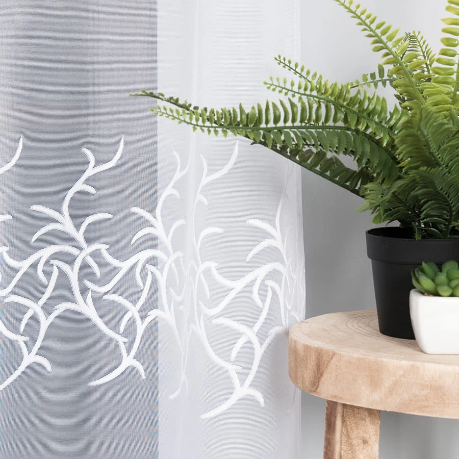 Firanka uszyta na taśmie marszczącej pięknie się układa, nie wymaga prasowania i można ją prać w pralce w niskiej temperaturze.