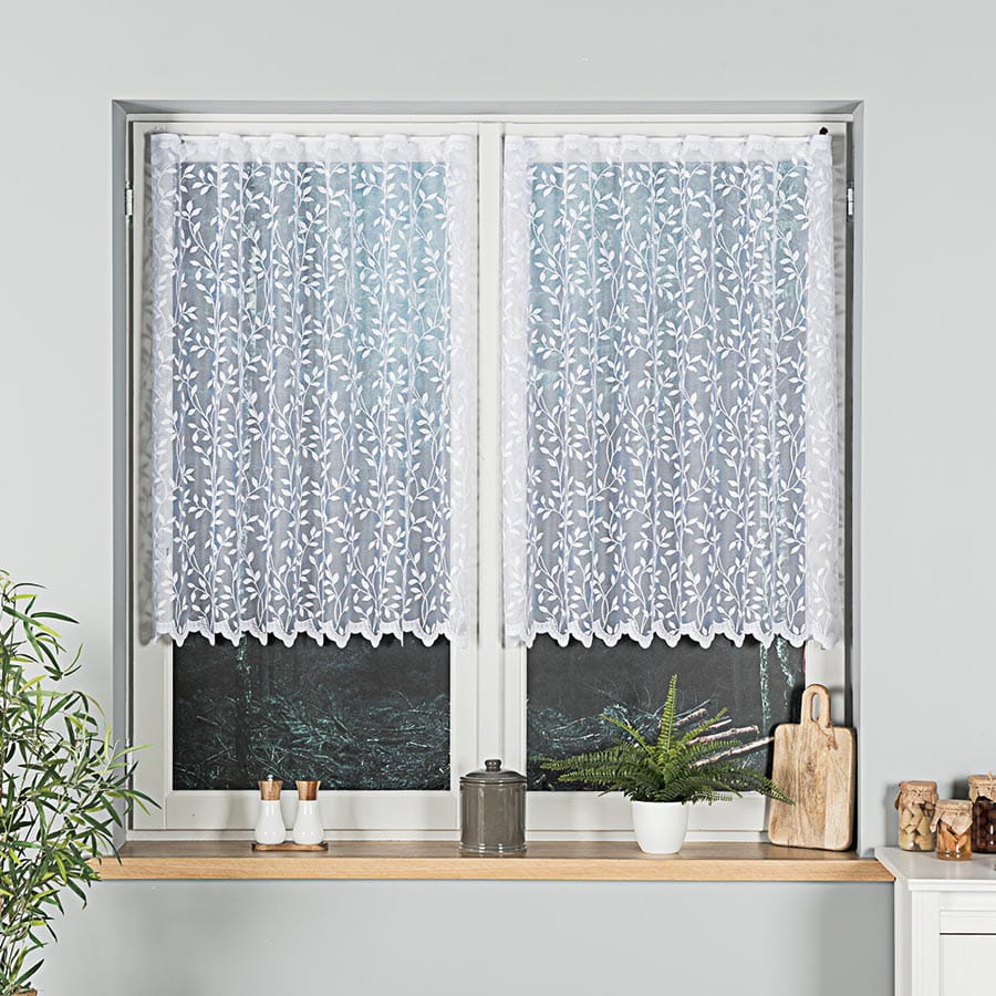 Firana dostępna w metrażu, objęta tolerancją wysokości w granicach +/- 3 cm.
