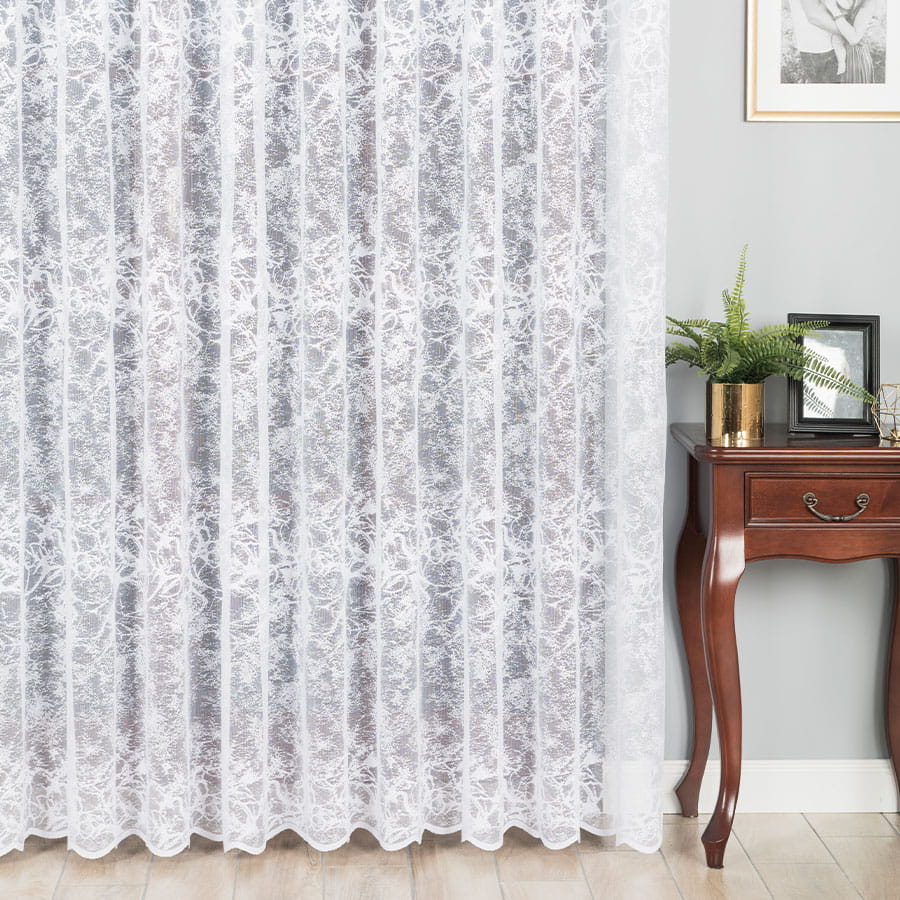 Firanka dostępna w metrażu, objęta tolerancją wysokości w granicach +/-3%.
