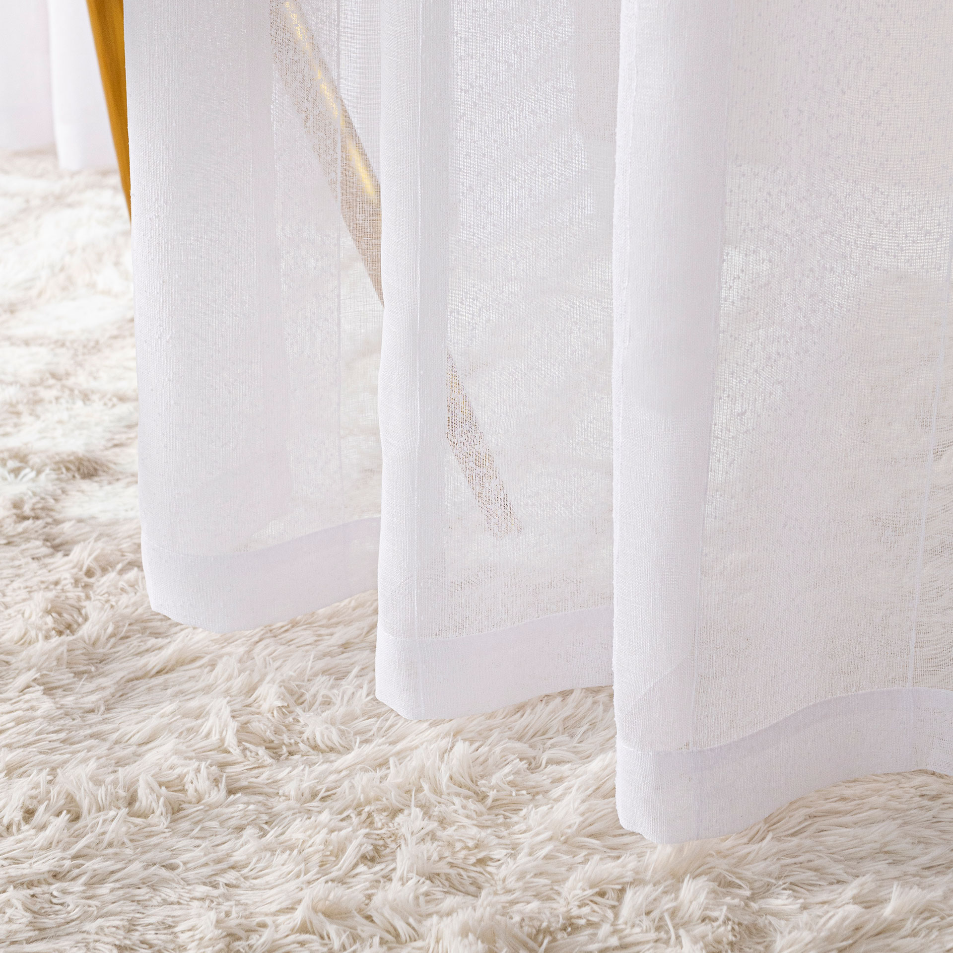 Firanka uszyta z fantazyjnej tkaniny firanowej, charakteryzuje się trwałością i łatwością w pielęgnacji. Jej neutralny, biały kolor oraz ponadczasowy wzór pionowych pasów z efektem deszczyku pasuje do wielu stylów wnętrzarskich, od romantycznych i rustykalnych po skandynawskie czy nawet nowoczesne, dodając im lekkości i subtelnego uroku.